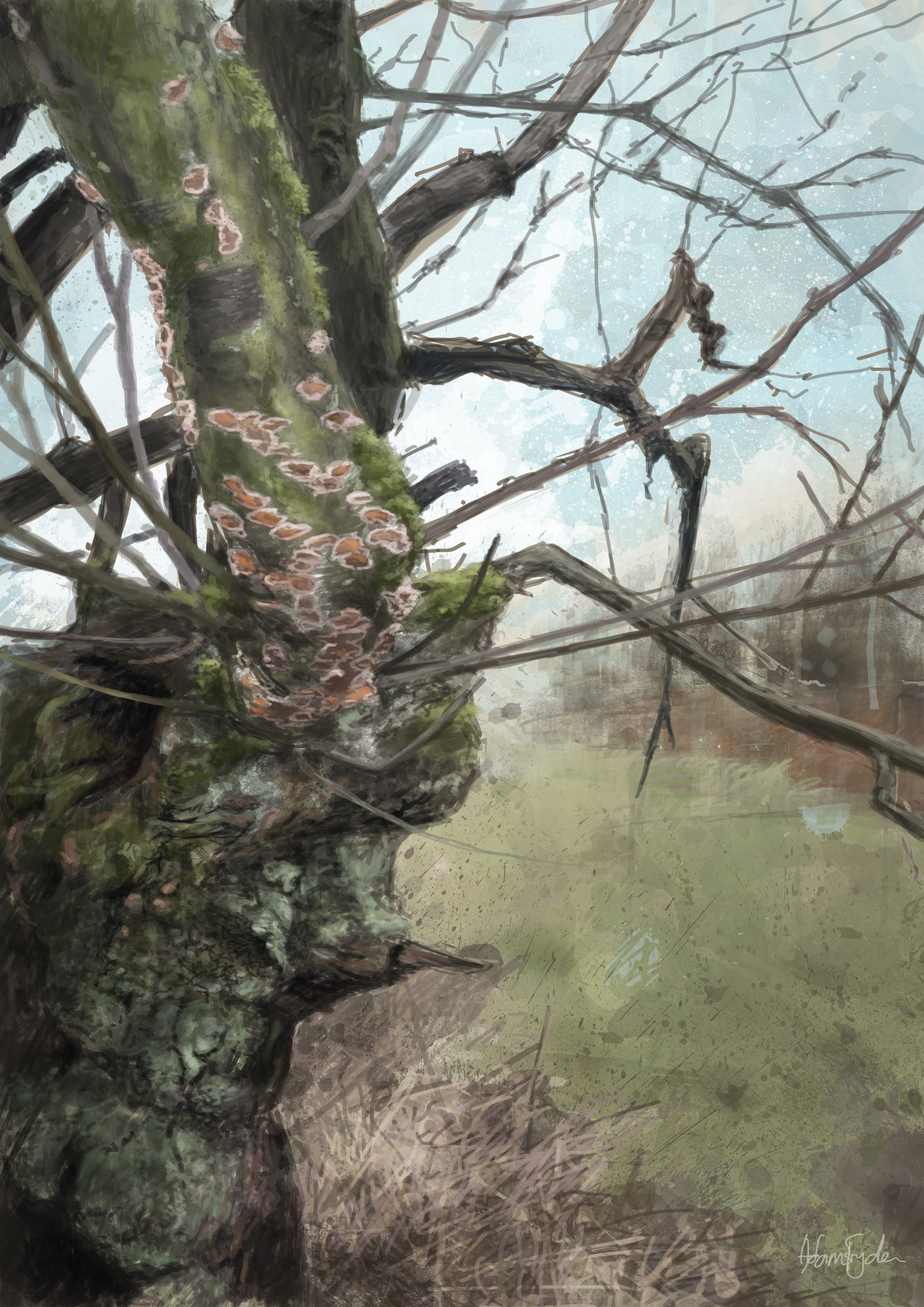 A small, gnarly oak tree along a regular walk. An old life, that has witnessed the passing of many lives and the coming of many changes. A refuge for countless creatures. A survivor. This is a rare, early digital art edition from Adam Fryda.