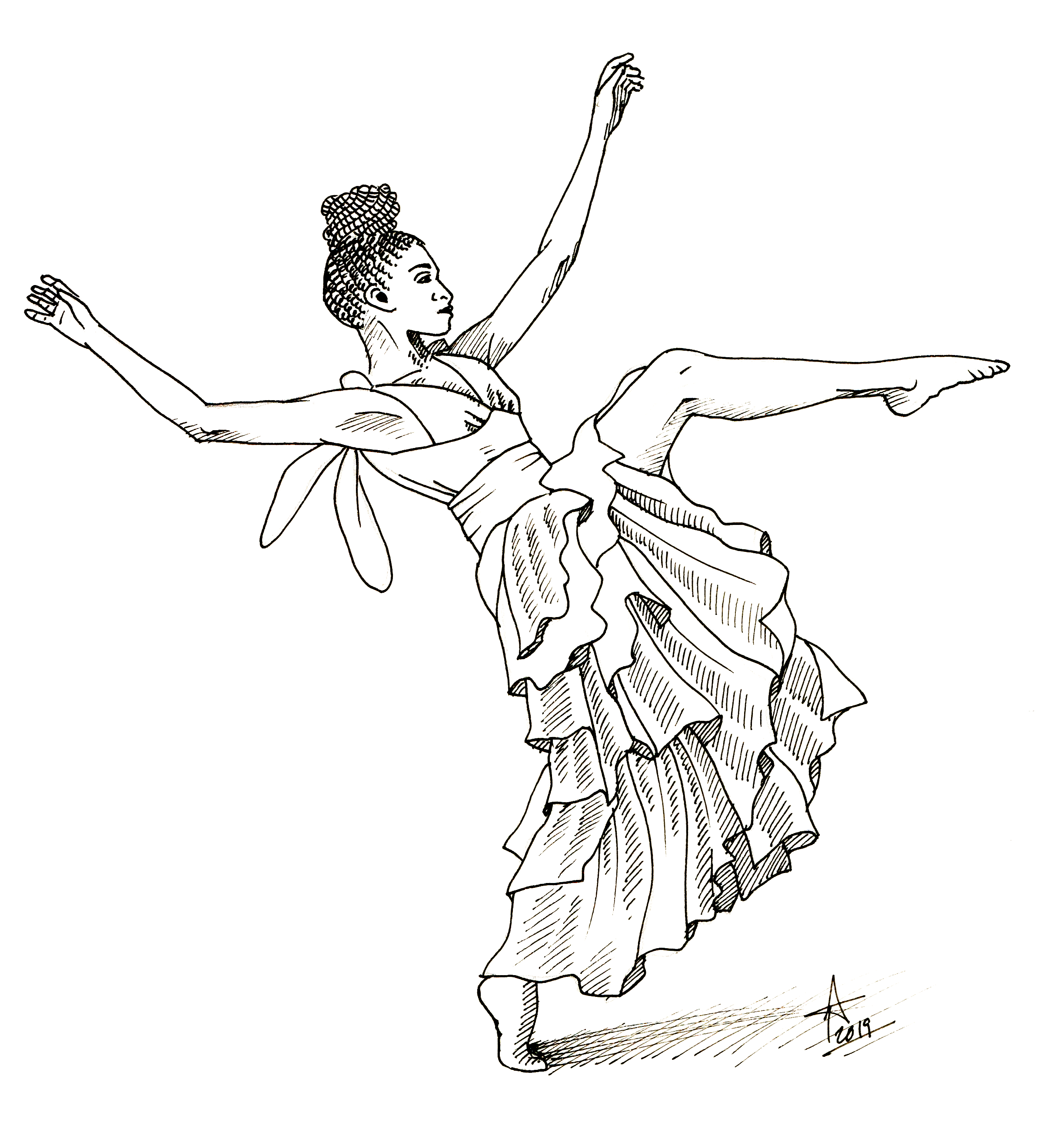 Scanned ink sketches of a dancers. These pieces are research sketches for a larger painting.