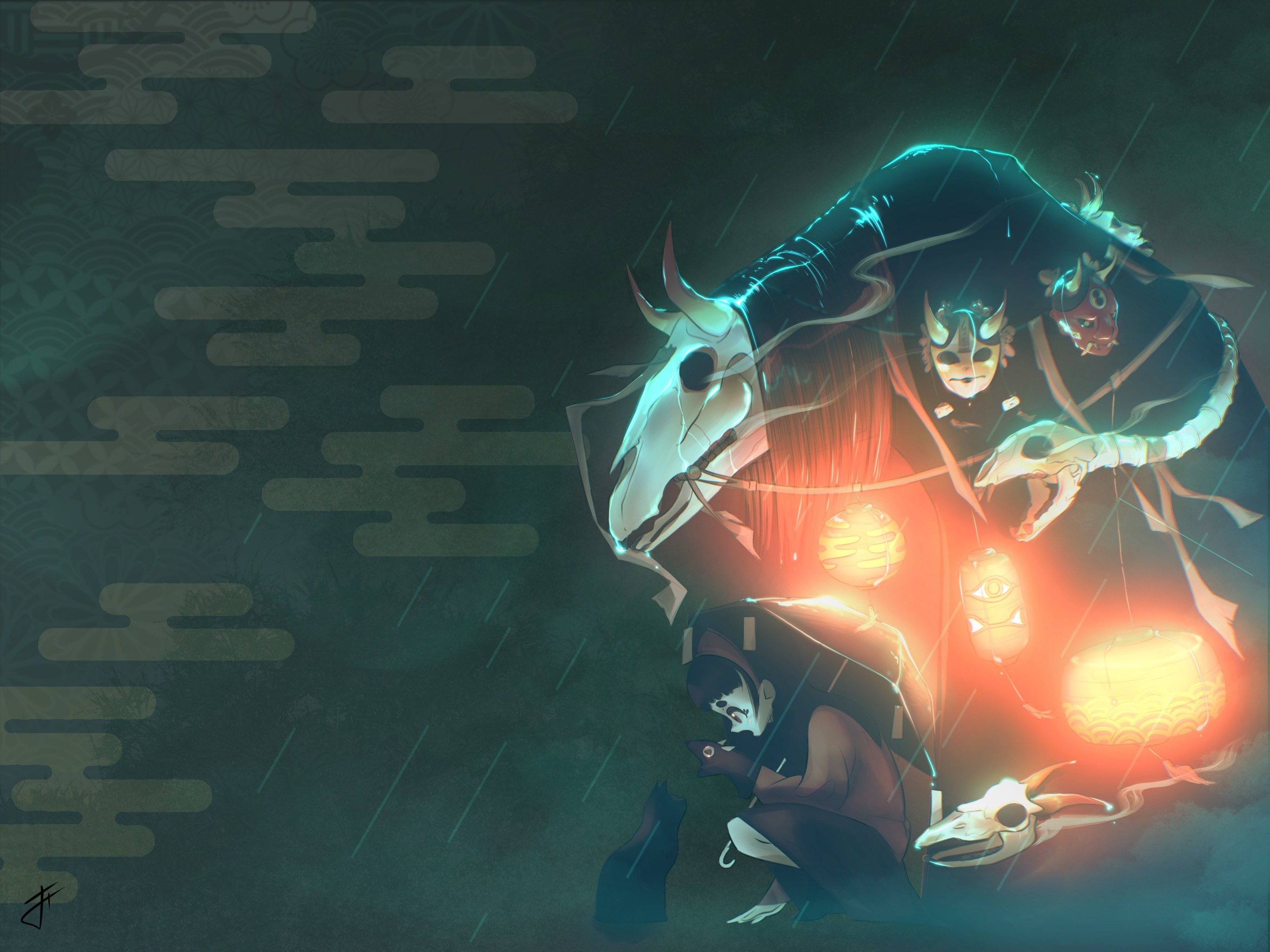 A little yokai girl inspired by Japanese culture, made with procreate