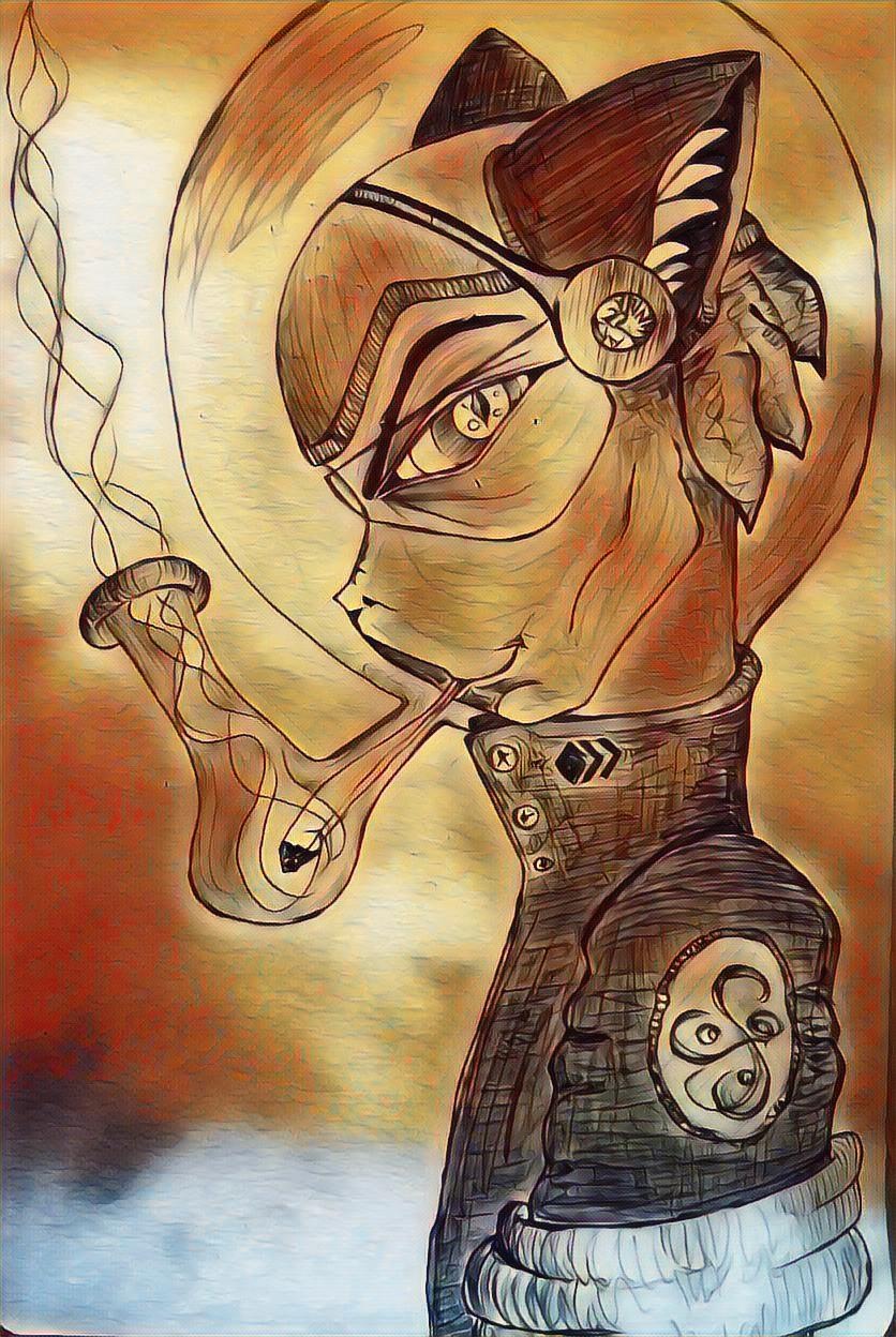 Likewise, I have integrated the properties of fertility, party, music, etc in my Alien-God artwork, so Bastz, I call him like, also looks more like a relaxed chiller. His special herbs are really fruitful and all fields with the bless of Bastz are considered fruitful, which is why Bastz is a master in growing various crops. His homegrown is healing, regenerating and beneficial for the creatures of planet Earth, which Bastz visits from time to time. Yes, he is only a visitor on Earth, because like the other Astro Alien God's, Bastet comes from another dimension aka planet. There, everyone looks like him, only in different feline shapes and forms.