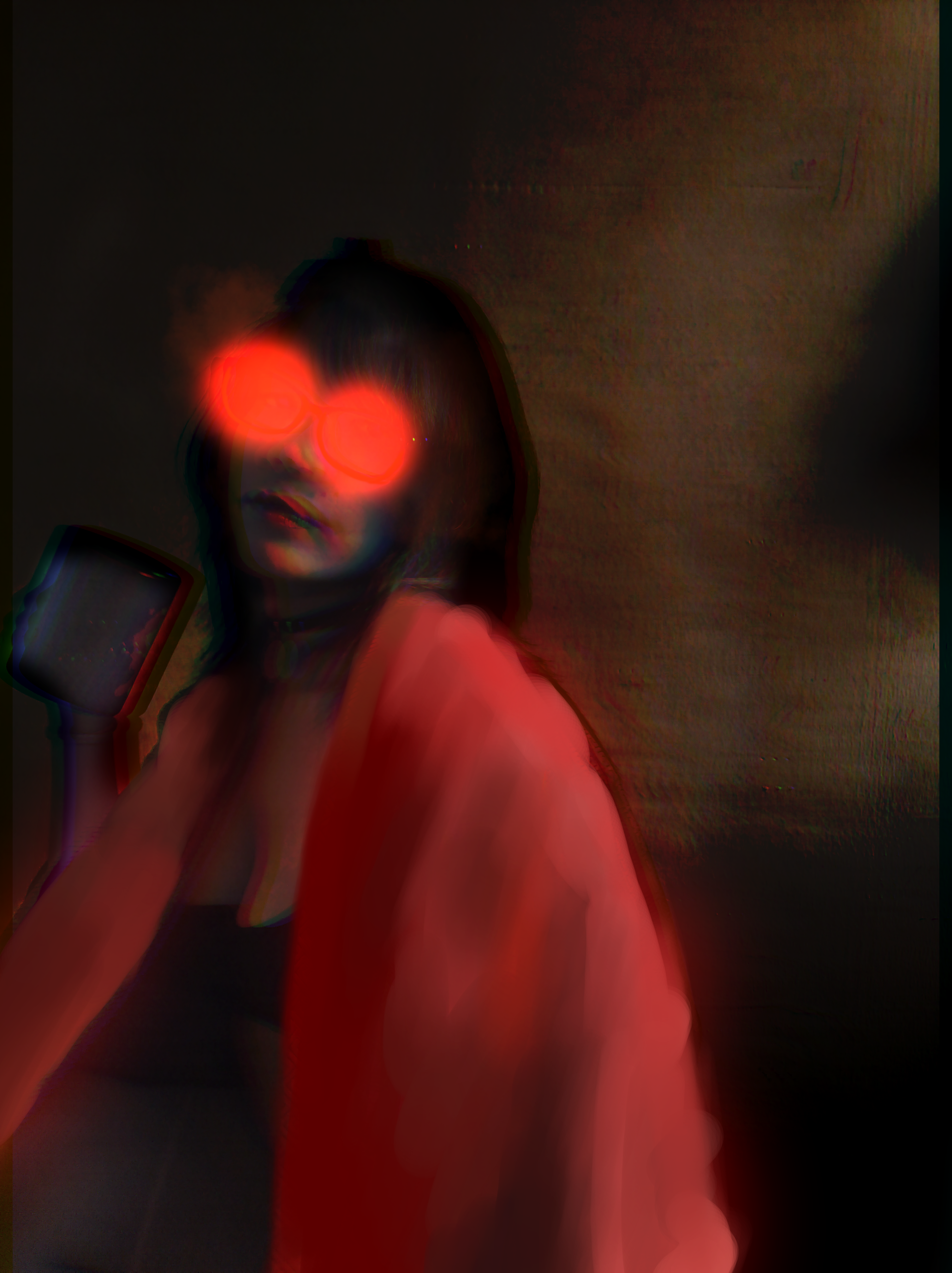 Sometimes I feel that someone else is inside me, takes over my thoughts and brings interesting things to my mind, she is just like me, but her glasses are strange, it scares me a little.