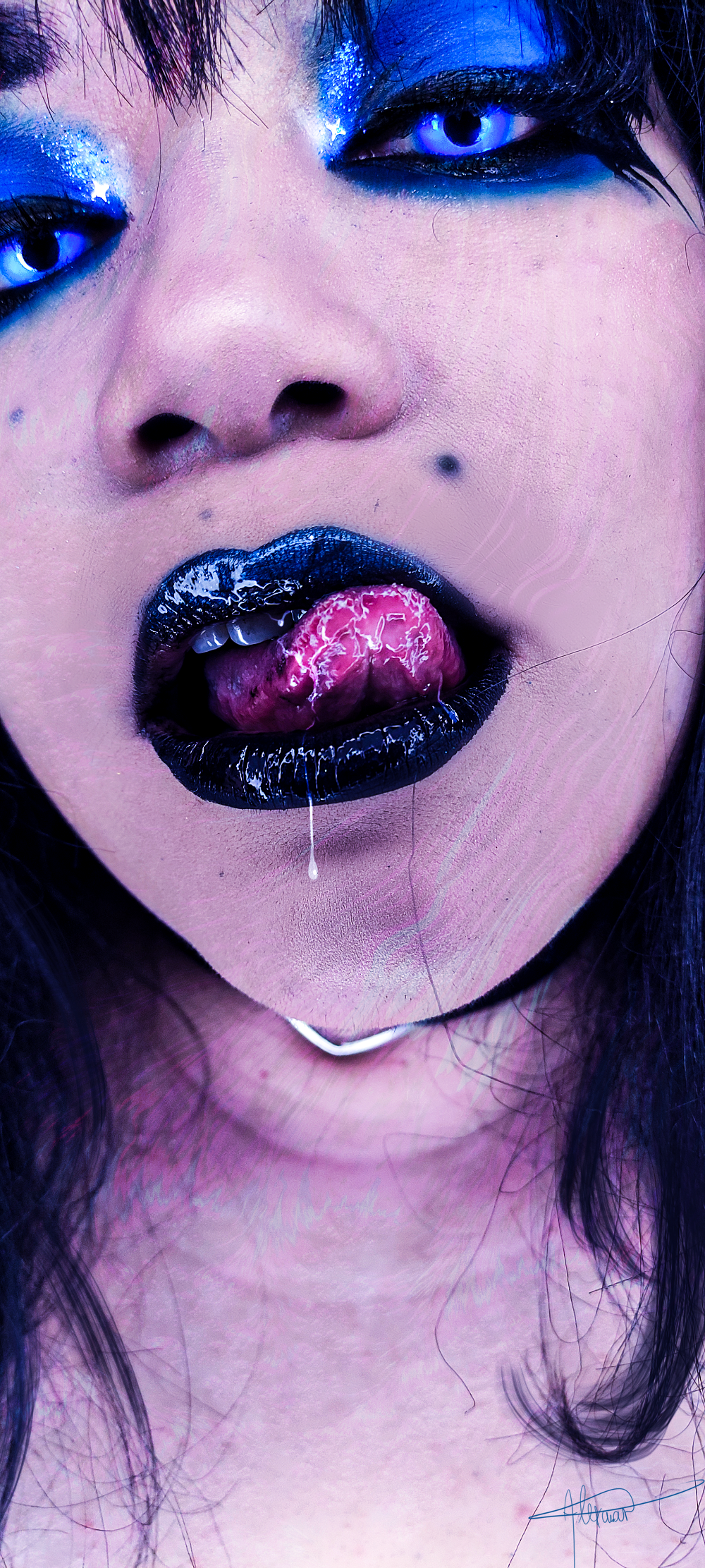 As the current of the sea your mouth takes me away from the shore, makes me float in a different reality, everything is blue and at the end of the day I know that you will not be mine, that also makes me blue.