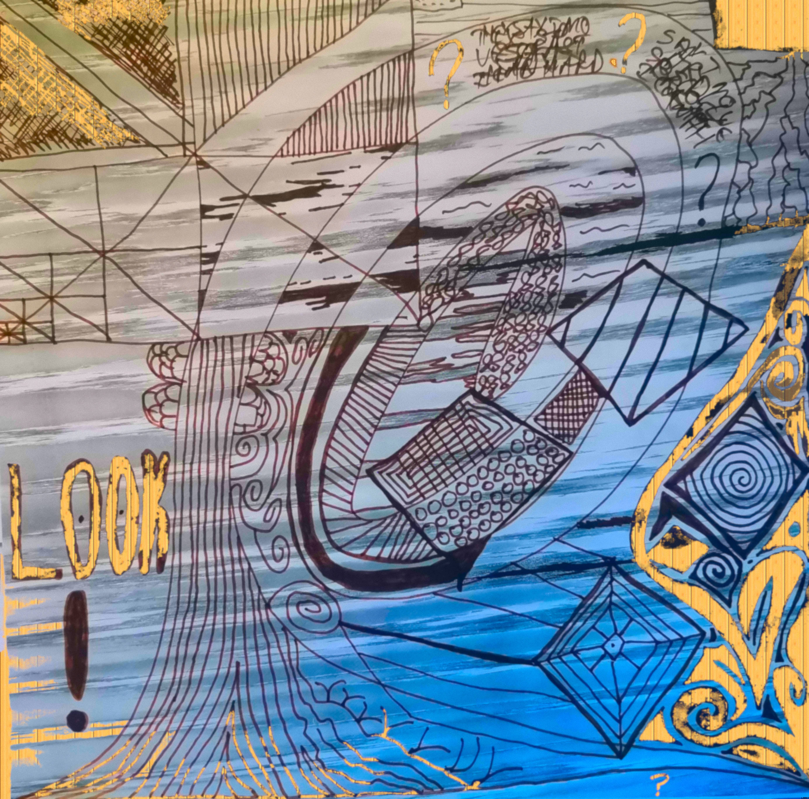 The original was a carefully selected detail of a computer-generated fractal, which I then printed to paper and partially inked over.