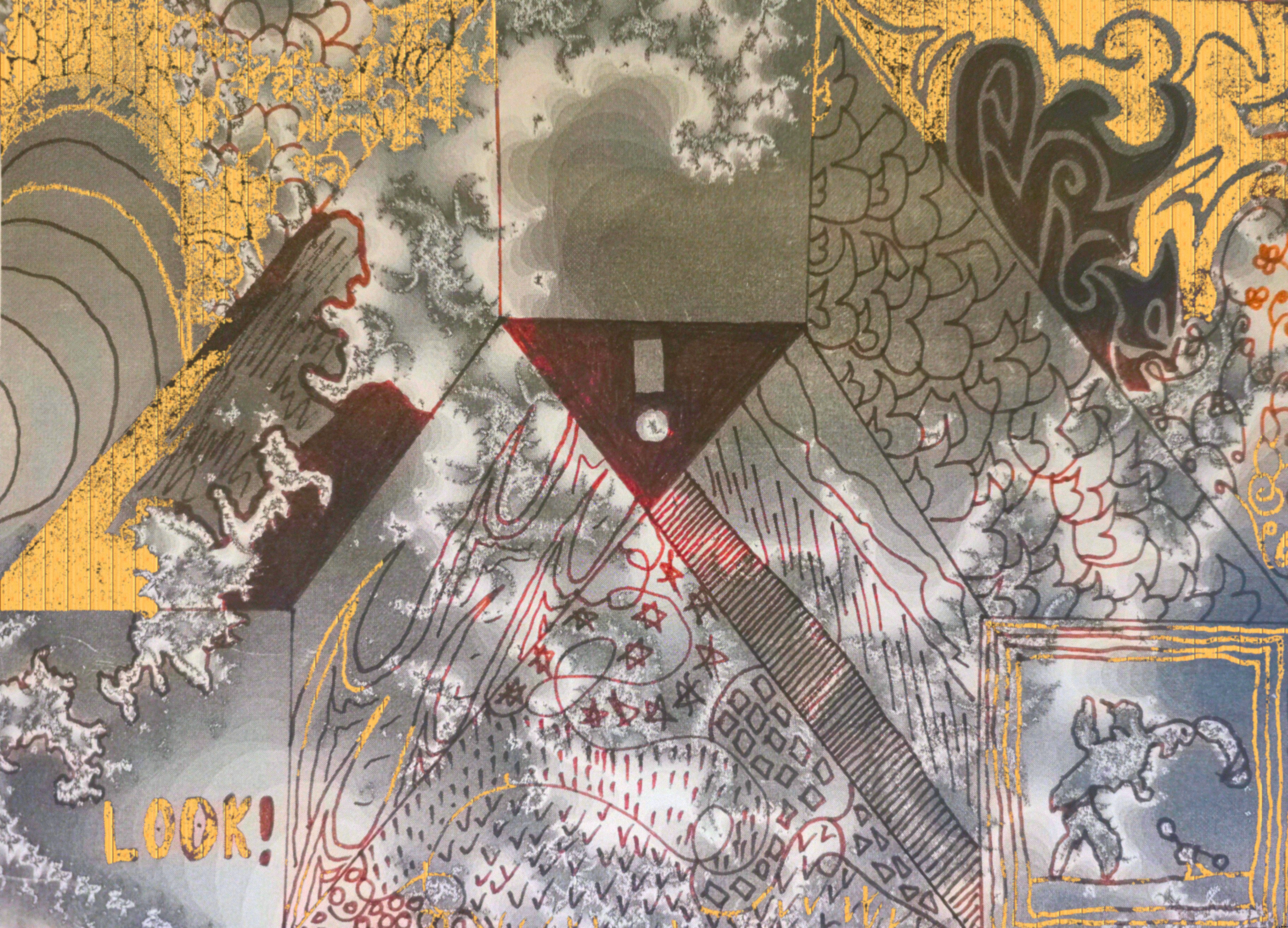 The original was a carefully selected detail of a computer-generated fractal, which I then printed to paper and partially inked over.