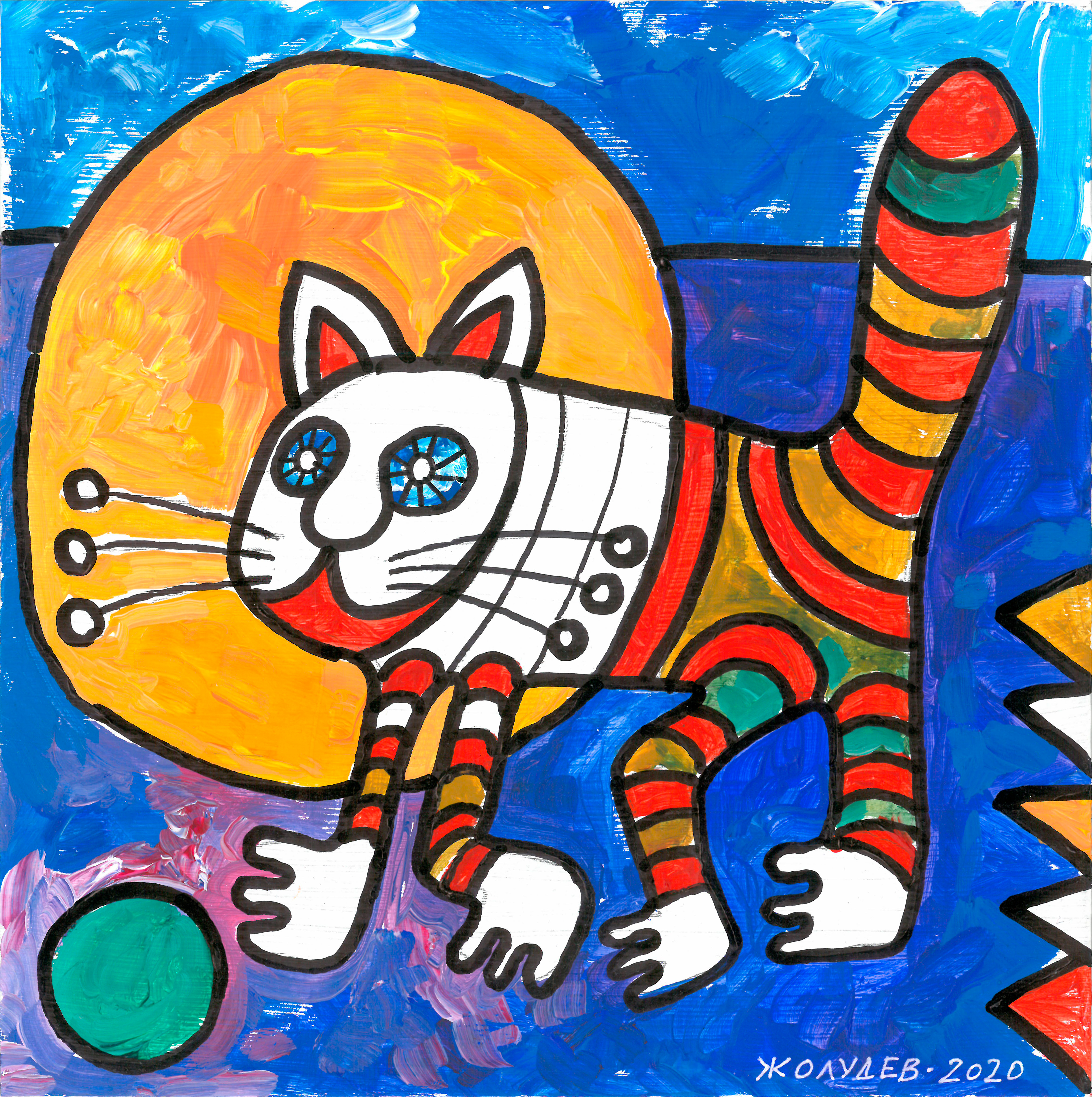 night walk (2)/2020/acrylic on cardboard (2 mm), black marker/scan of painting 4690 x 4710