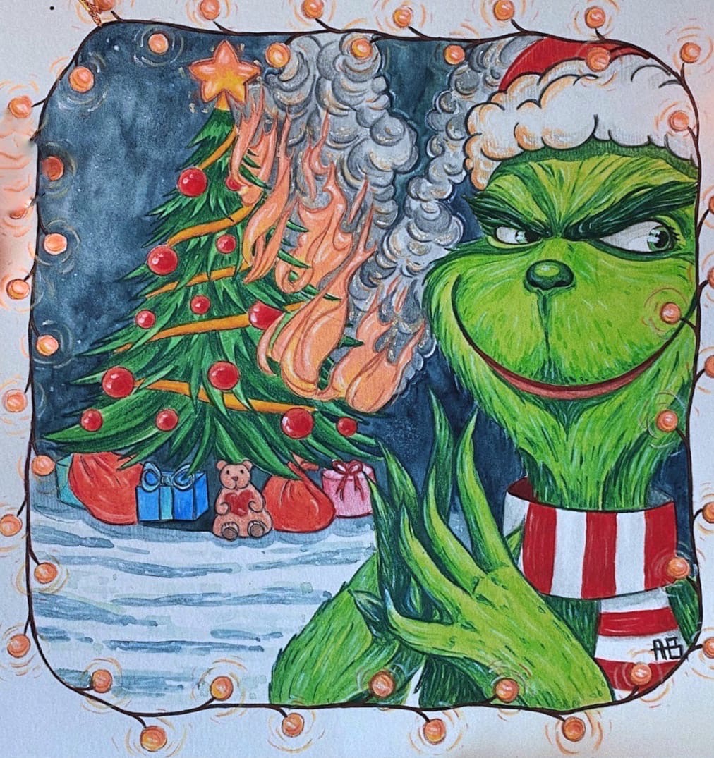 The Grinch burned the Christmas tree