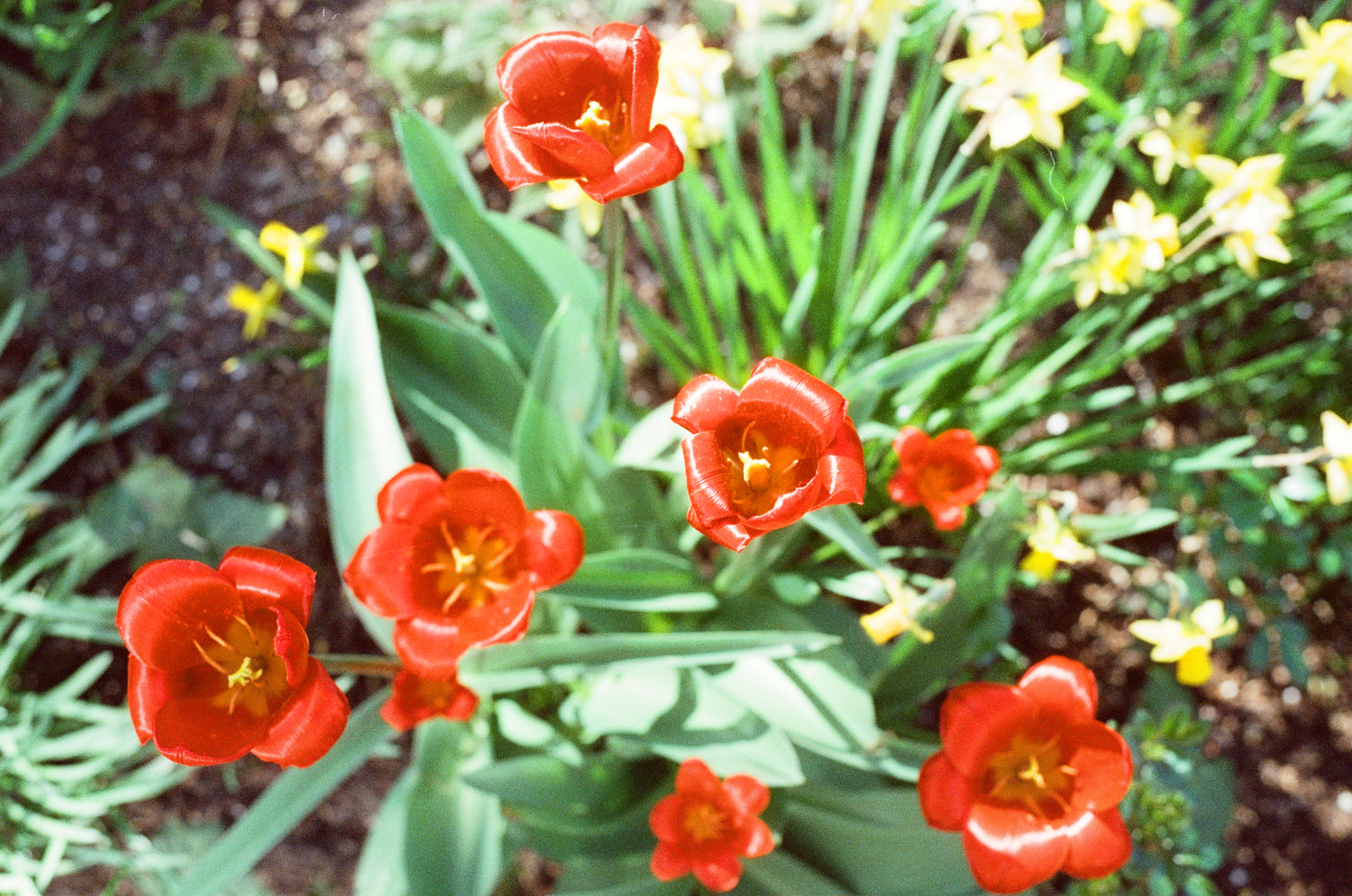 Colorful Flowers captured with Cinestill800T 35mm Analog Film using a Nikon F3 and Nikkor 50mm 1.8 lens.