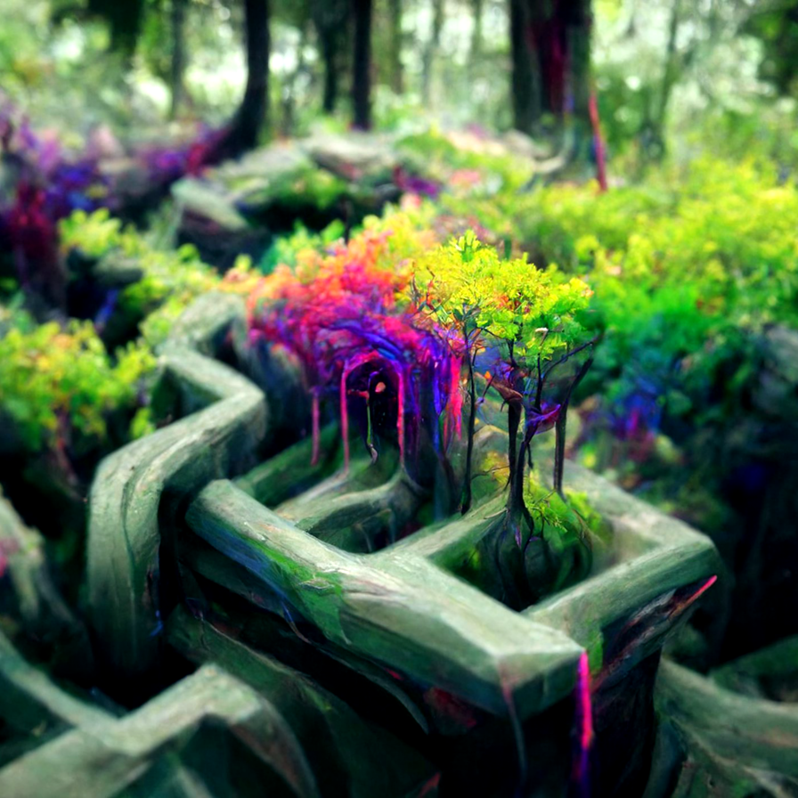 A surreal piece combining trees with a maze made of tree roots. Mother nature works in magnificent ways that can leave us confused and astounded. When you are stumped or flummoxed in life, try to take a step back and appreciate the beauty of nature, and you'll find new imaginative solutions.