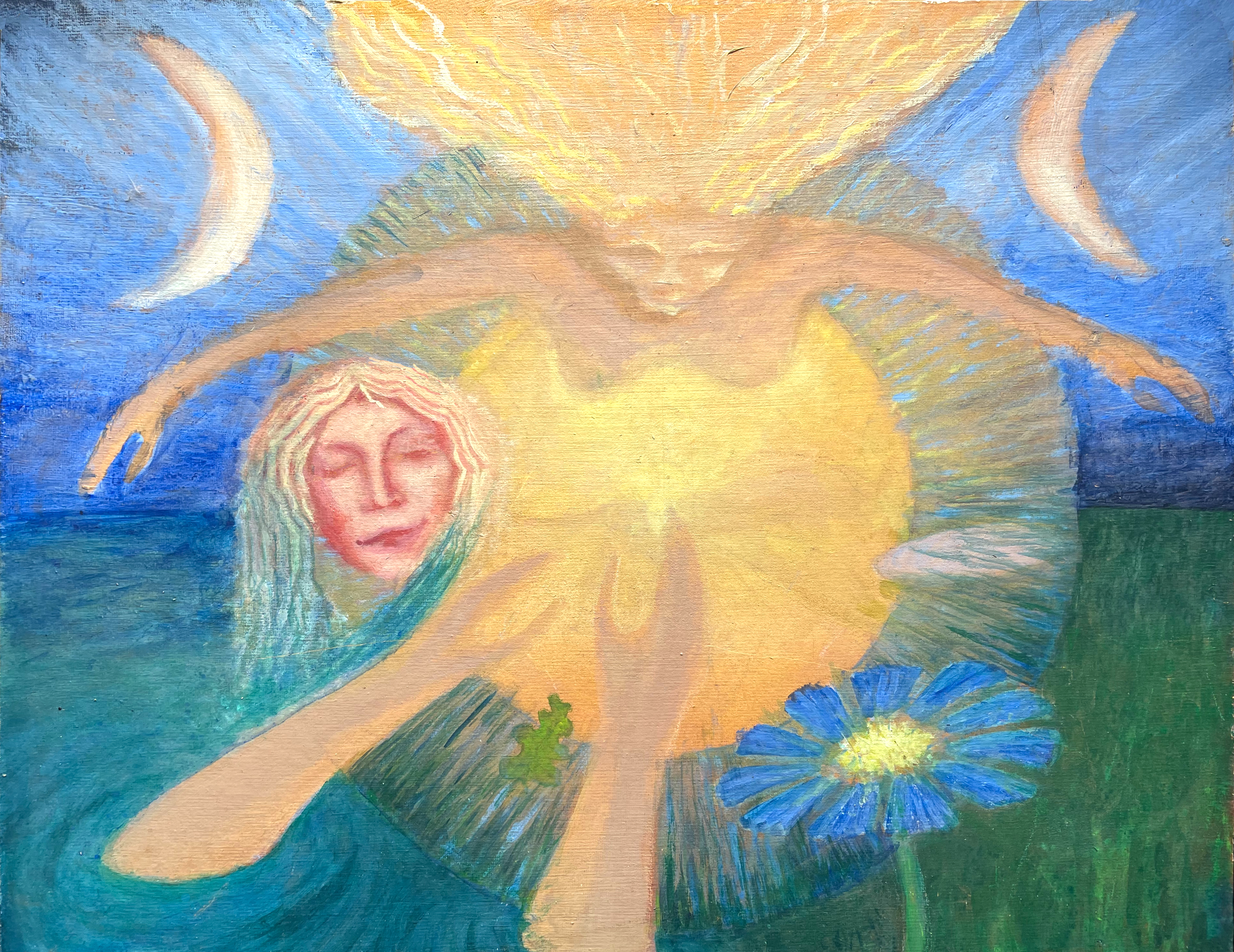 dream awakening, the moment, realising now . original painting Acrylic on canvas board .