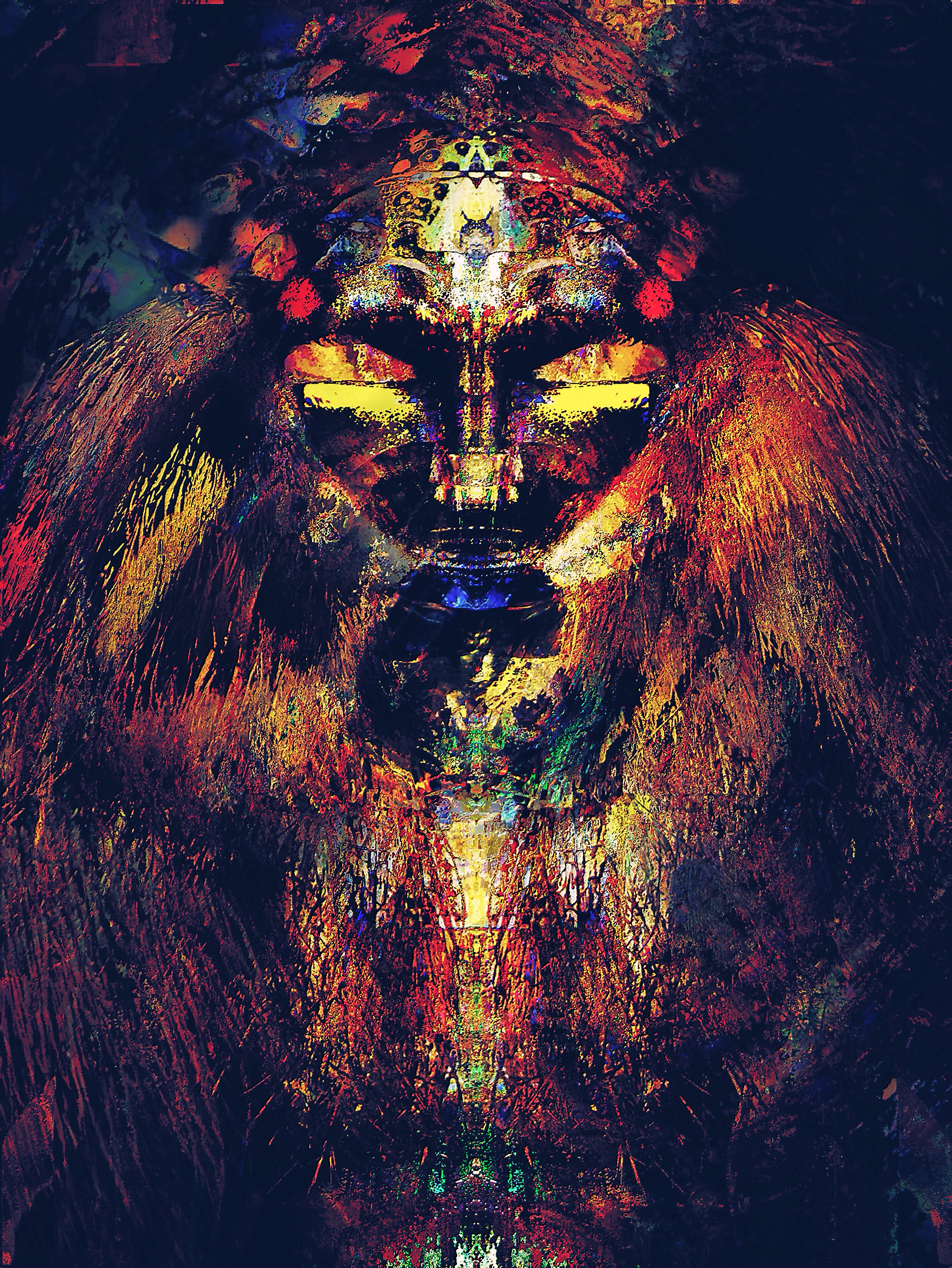 Created by transmuting tribal African masks (using nothing but that) until a spirit emerged from them...