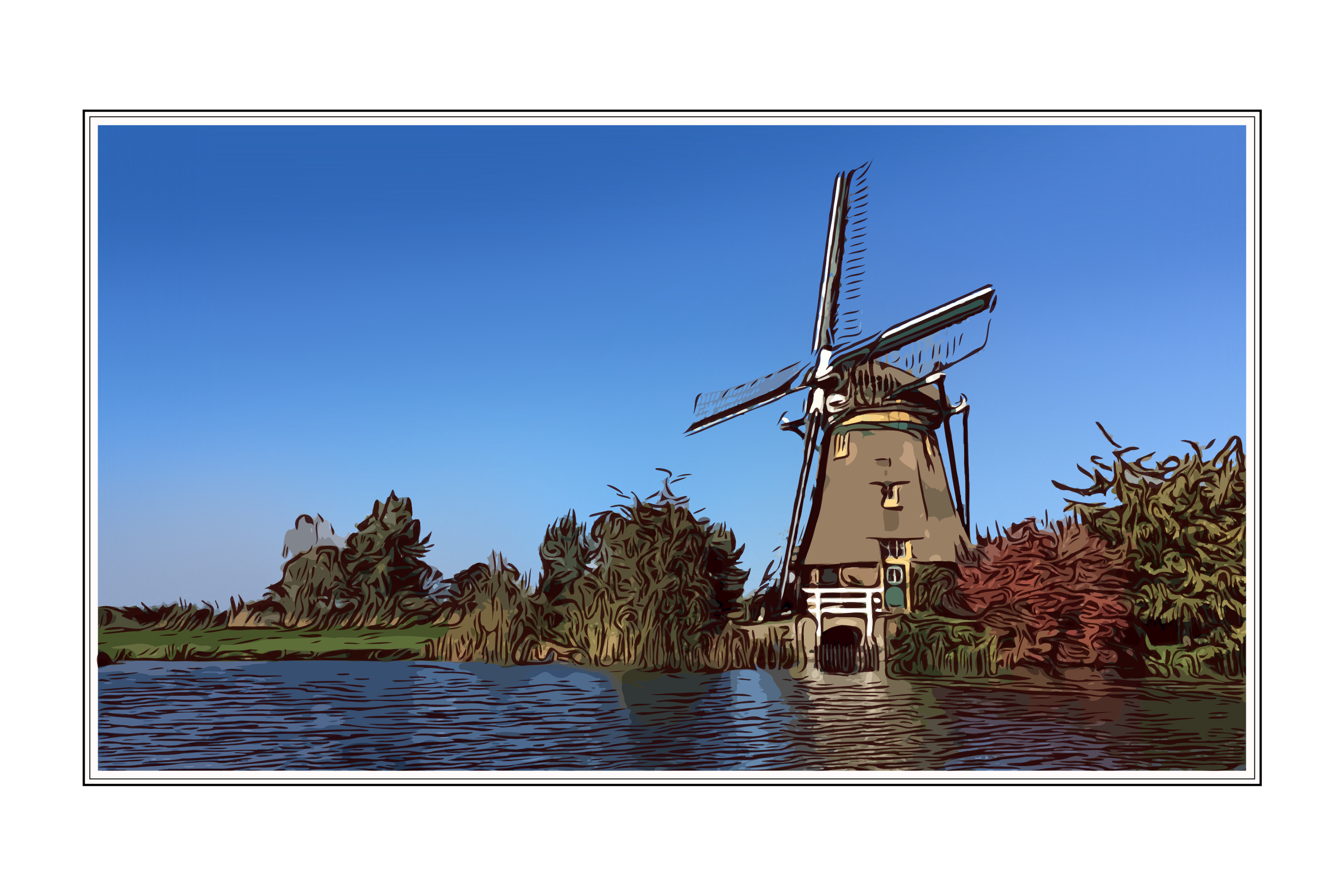 This picture is part of a series. Inspiration for this series are the books about The Netherlands, issued first half of the 20th century by the dutch biscuit manufacturer Verkade. The books were illustrated with collectable watercolor art pictures, which were reproduced with chromolithography. The art pictures were collected by children and later also by adults and had a very recognizable style.