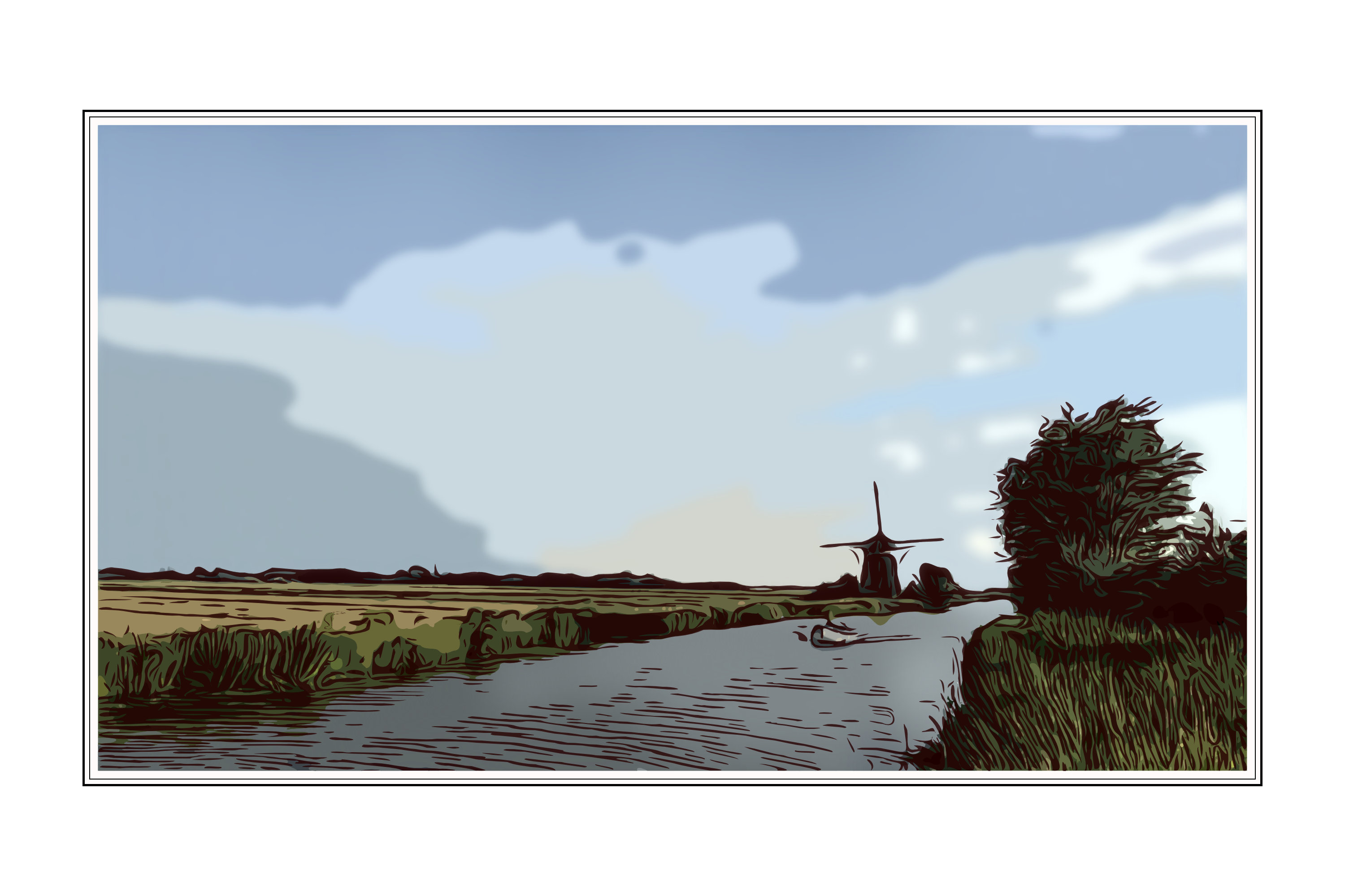 This picture is part of a series. Inspiration for this series are the books about The Netherlands, issued first half of the 20th century by the dutch biscuit manufacturer Verkade. The books were illustrated with collectable watercolor art pictures, which were reproduced with chromolithography. The art pictures were collected by children and later also by adults and had a very recognizable style.