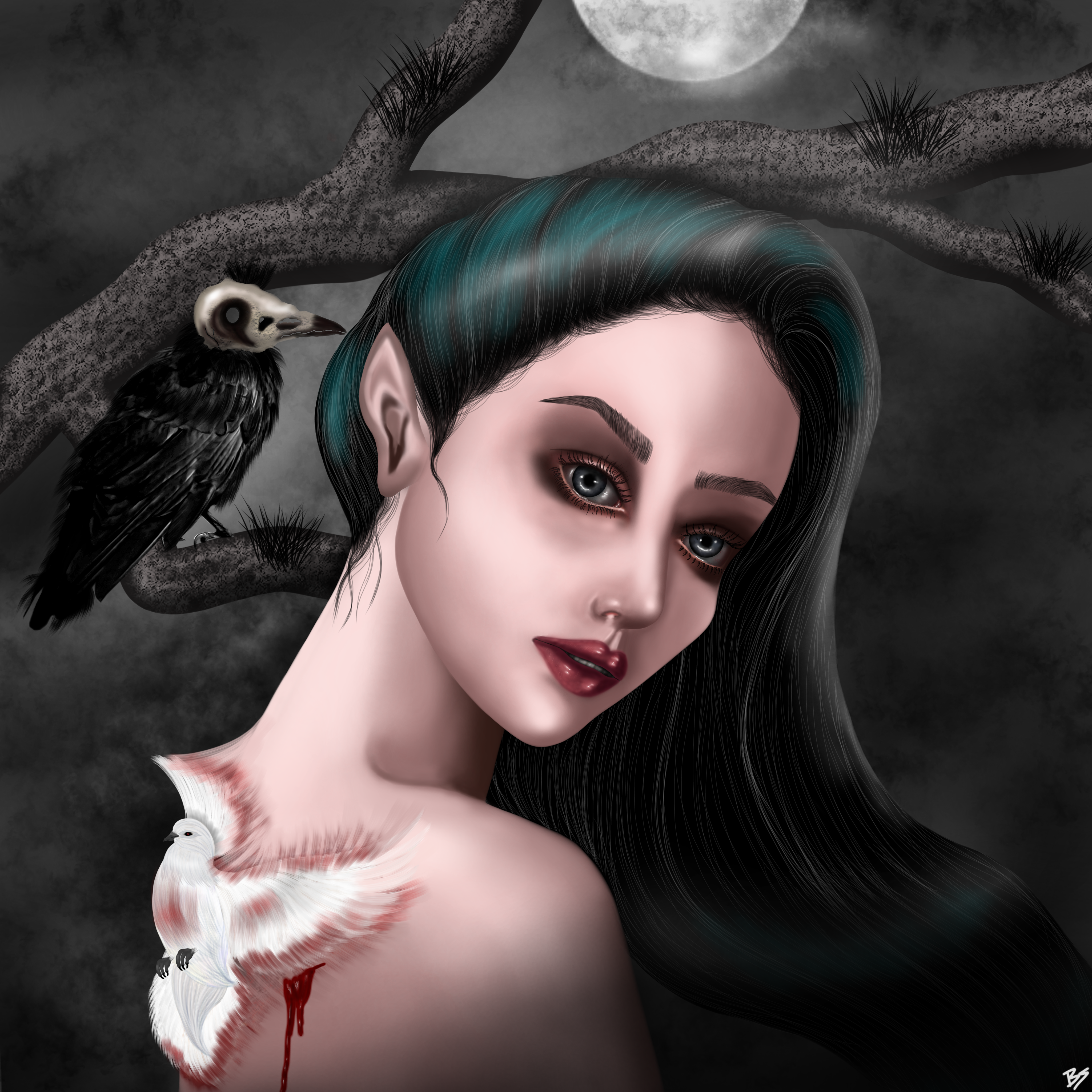 On the outskirts of a very old city is a dark and gloomy forest that few dare to enter, legends say that there live magical creatures with dark powers that consume the souls of the unwary. However the lady and mistress of this dark forest is an ancient spirit in the form of a woman who after being deceived by the darkness forgot who she was, bewildered she took refuge in this forest which was gradually consumed by its power and although there is still living nature within it, the forest looks dead. This ancient spirit lives in the middle of the forest afraid to touch anything because everything she touches seems to die, unfortunately this ancient spirit has forgotten the true nature of his power: to give life and death, so meanwhile by ignorance, only continues to wander through the forest lost, accompanied only with his loneliness.