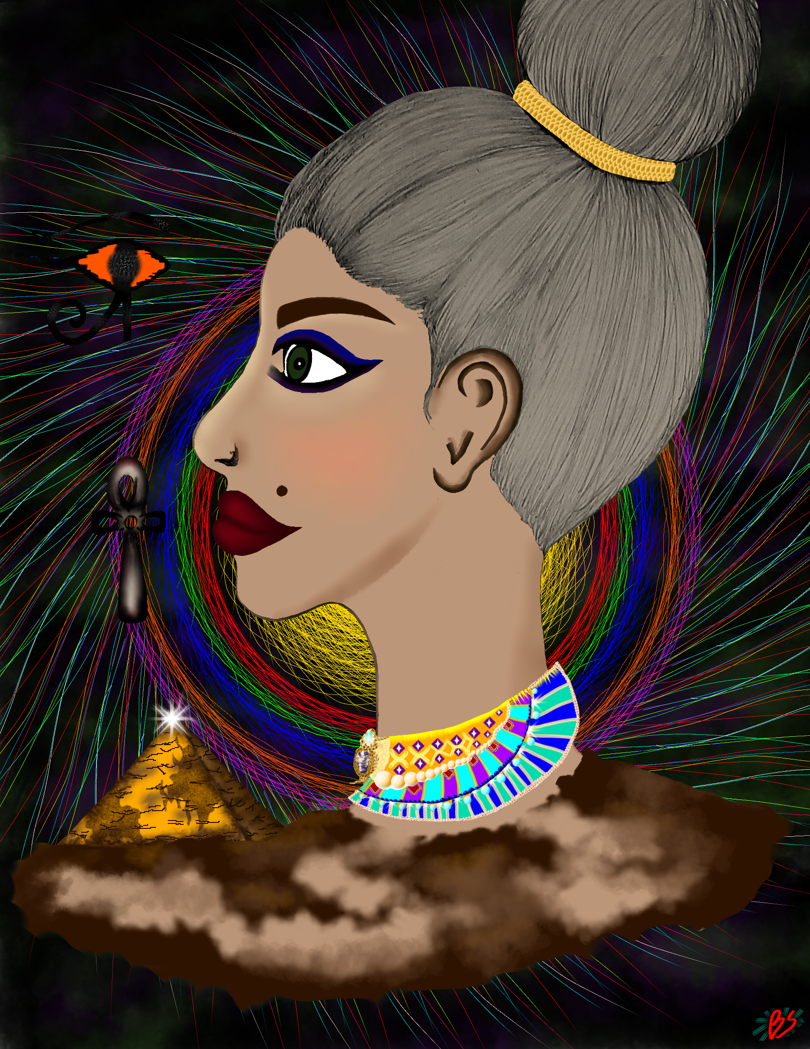 This is my first work of art, at the time of creating the sketch, I wanted to draw a face, it was a challenge for the years that I had not drawn, from the face my pations flowed through ancient cultures, the mystical, only ideas and everything were combined flow, this is a traditional sketch digitally painted / Digital Art / png 1646 X 2130 px 4.82MB