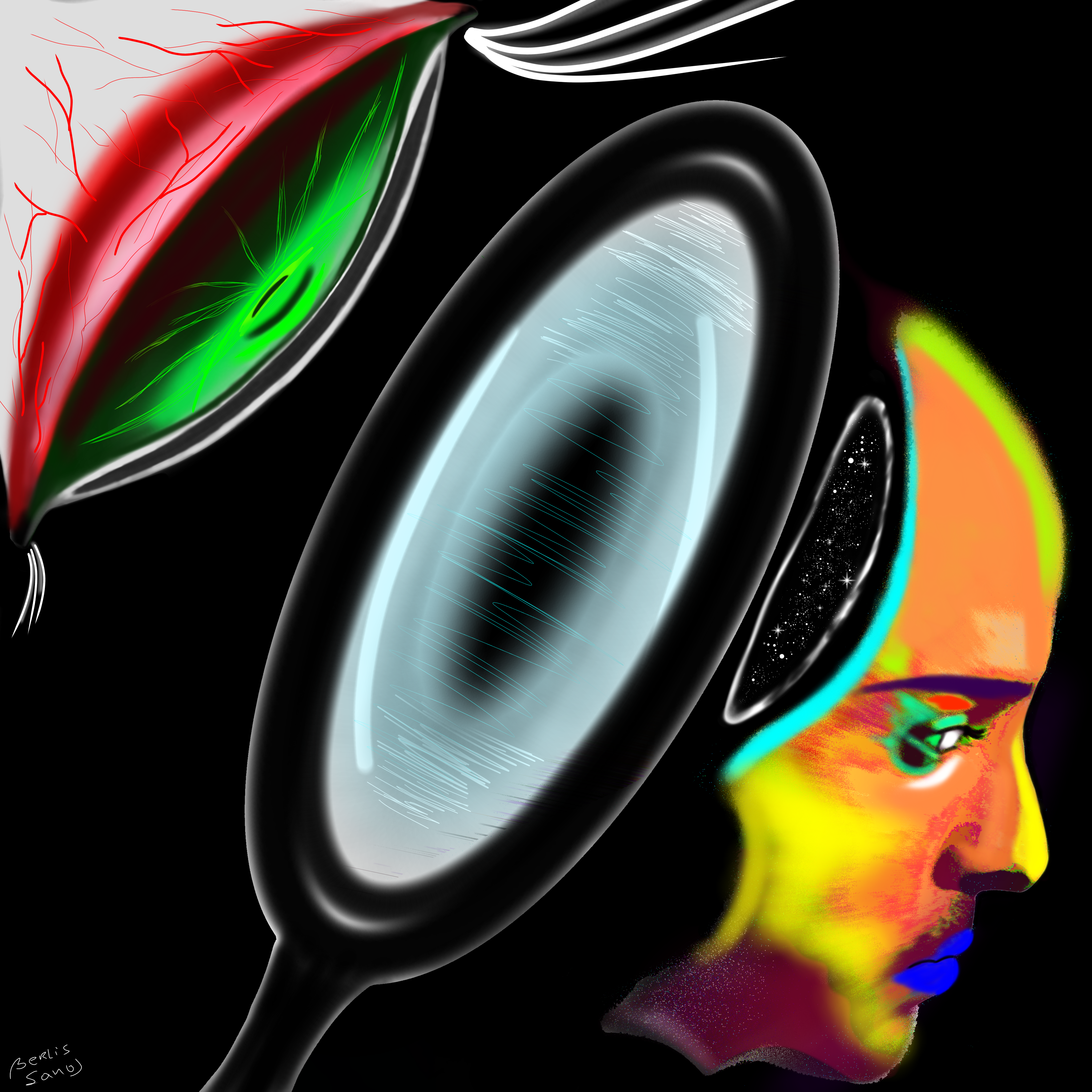 To create my works I was inspired by my emotions, by what I feel or what I live, this work was born from a small talk I had with a person, at the end of the talk I asked myself what the hell is in his head? At that moment I wanted to have a magnifying glass to see inside his head, that image was recorded in my mind and I made it.