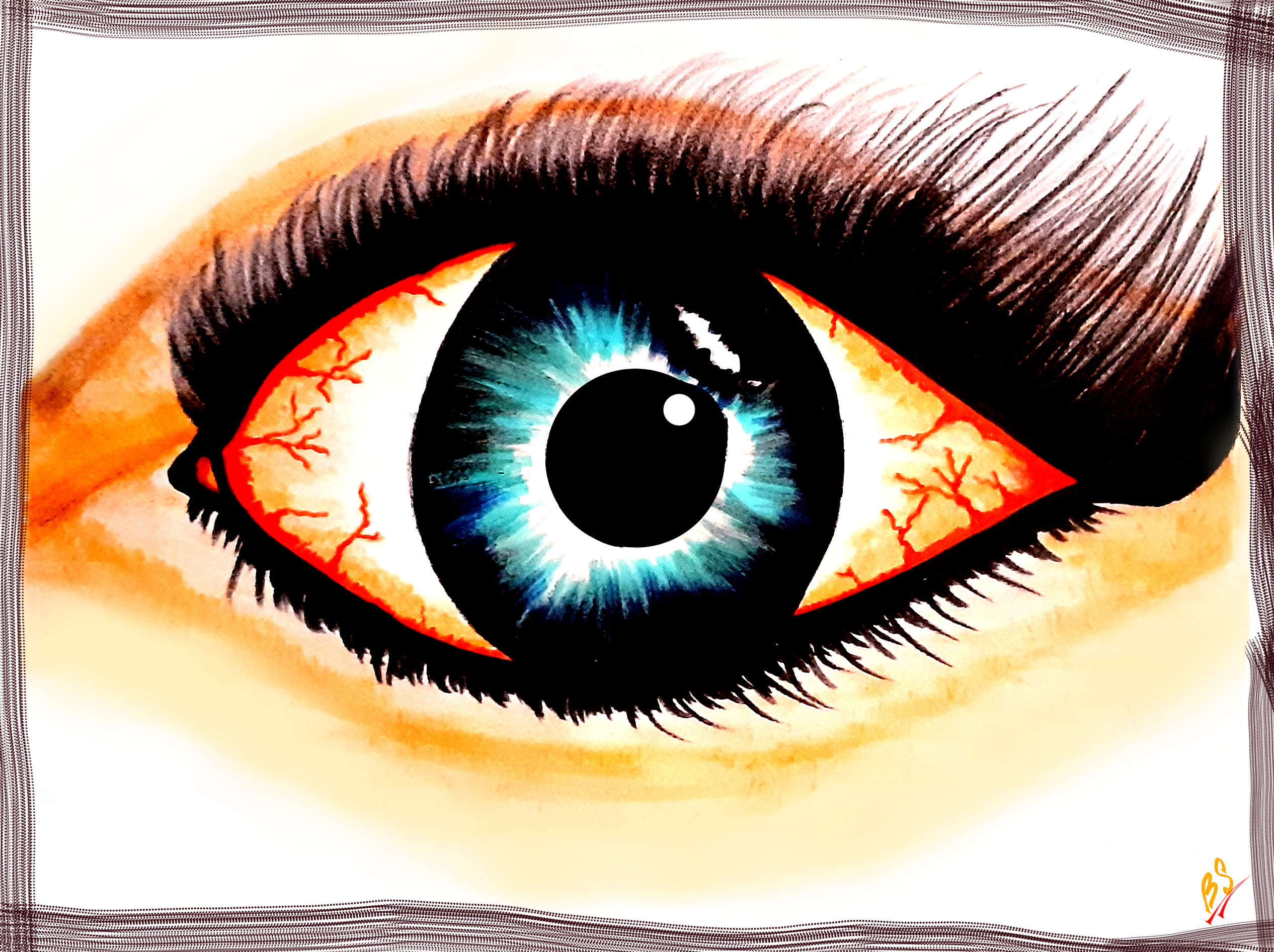And today was one of those days, after a long morning trying not to talk to anyone, my afternoon looked worse, I needed to drain all those emotions that flooded my mind, so I grabbed some markers a sheet of recycled bond paper the first one I found and I began to draw the first thing that crossed my head an eye full of anger.
