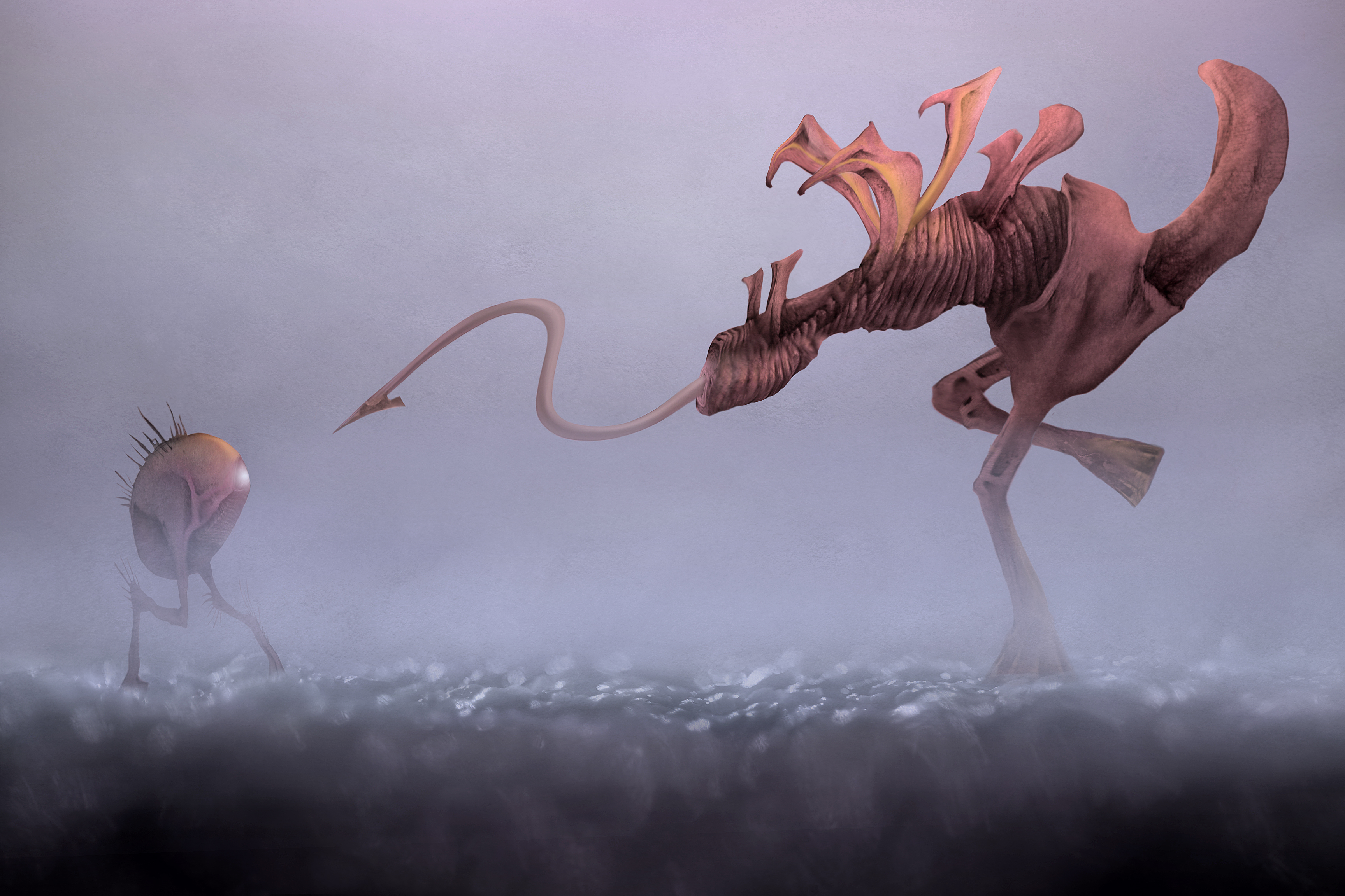 This is another peek at the extraterrestrial fauna I'll be slowly revealing through this collection of artworks I did some years ago, without a clear idea where to place them, in some book, some animation or just as ordinary pictures hanging on the walls, but with a clear vision about how this imaginary ecosystem will look. This stuff is a combination of hand drawing, painting and macrophotography put together in photoshop. It was made for Science Fiction and biology enthusiast primarily, because I'm one of those :D