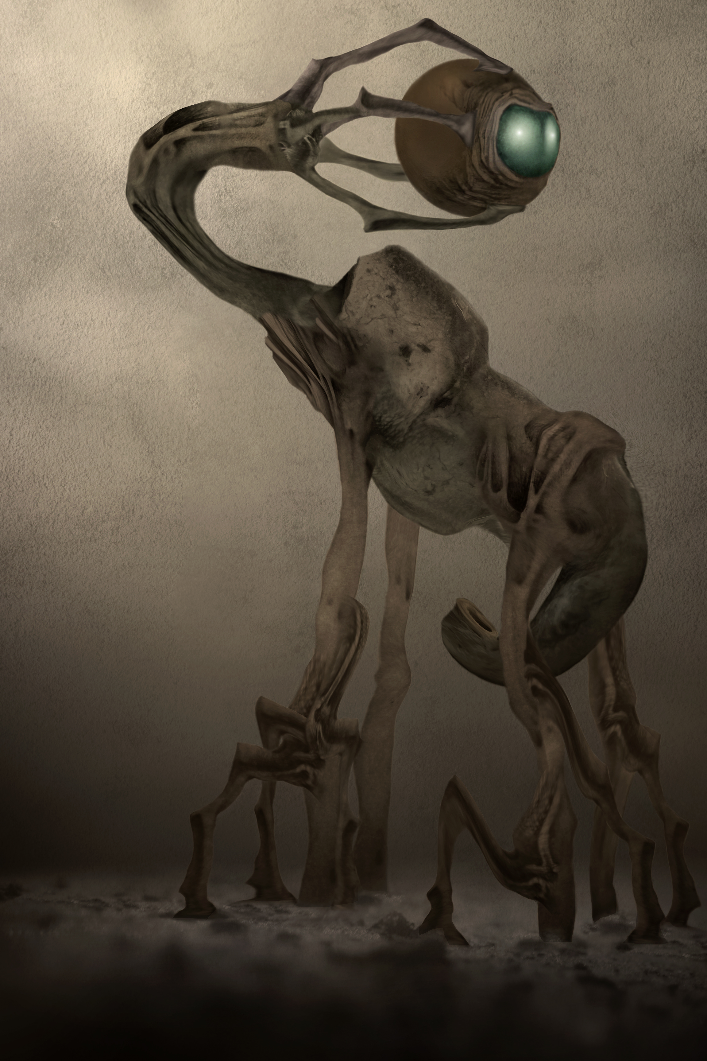A composite organism made of two creatures. The bigger one is strong and can move fast but is absolutely blind, the small rounded one is adding sight and intelligence to the combination. The artwork itself it's a combination of hand drawing, painting and macrophotography, all put together in Photoshop for the end result that you can see and buy here.