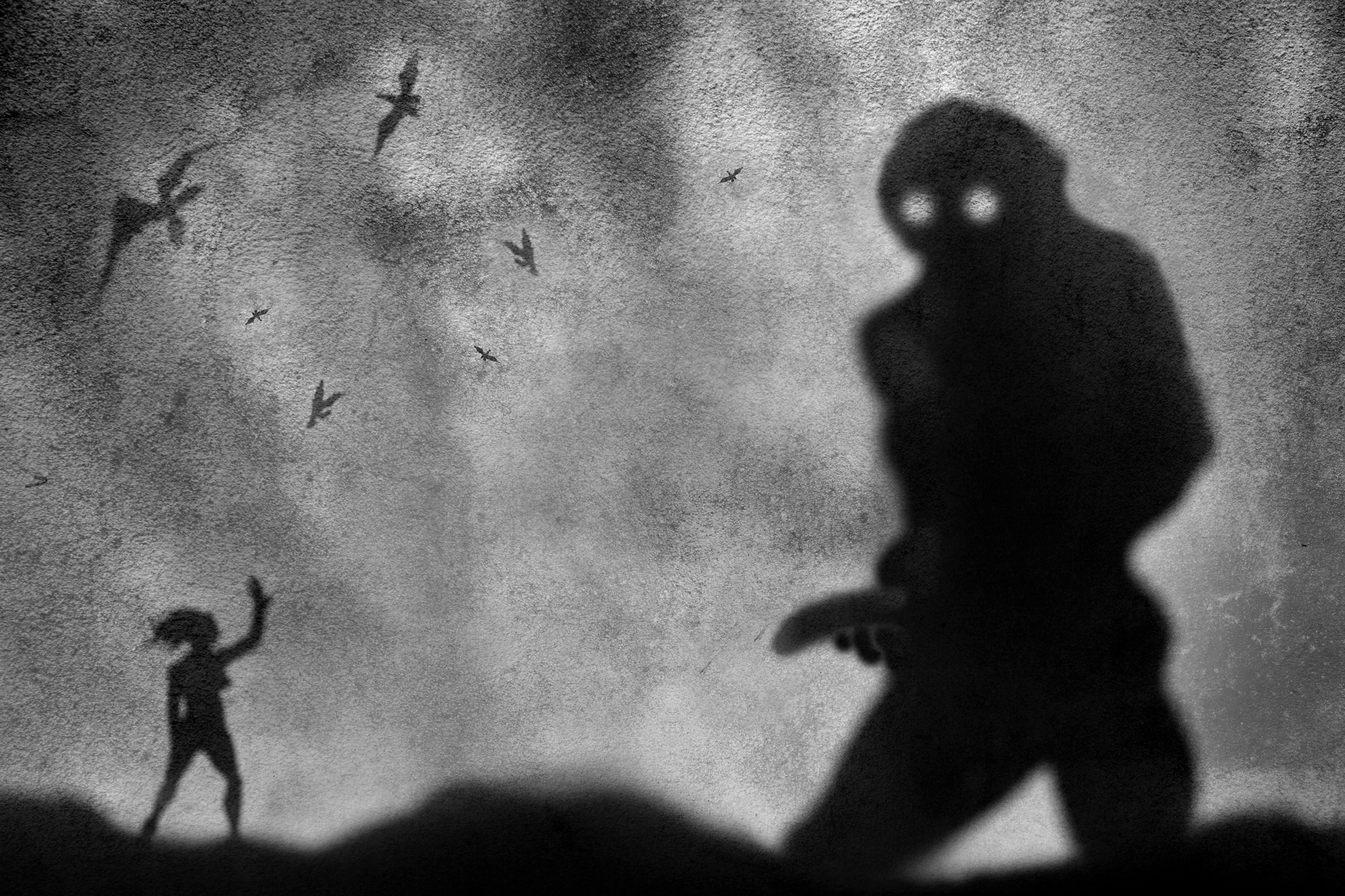I made some simple pencil drawings ... then I cut them out of the rest of the paper ... make them do some shadows and photograph the thing ... and finally put this thing together in Photoshop.