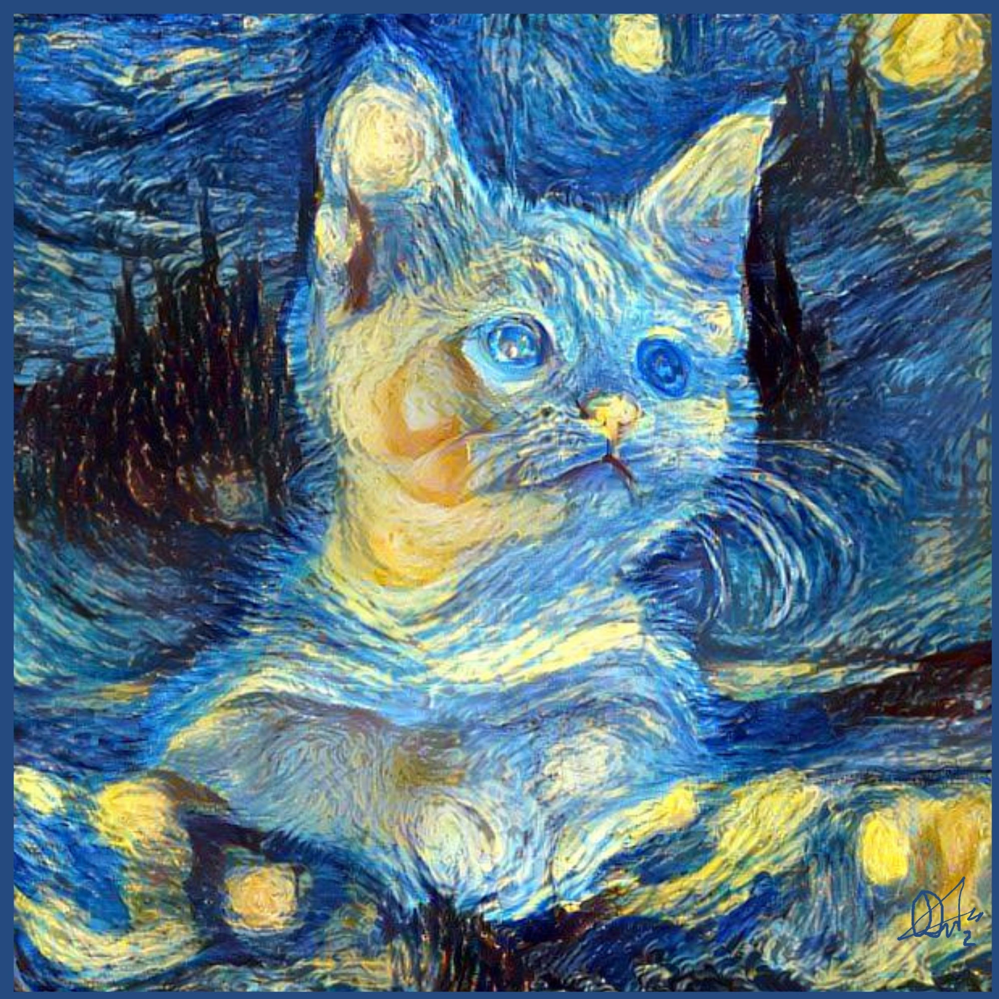 This image represents a reinterpretation of the painting "The Starry Night", in French "La Nuit étoilée".