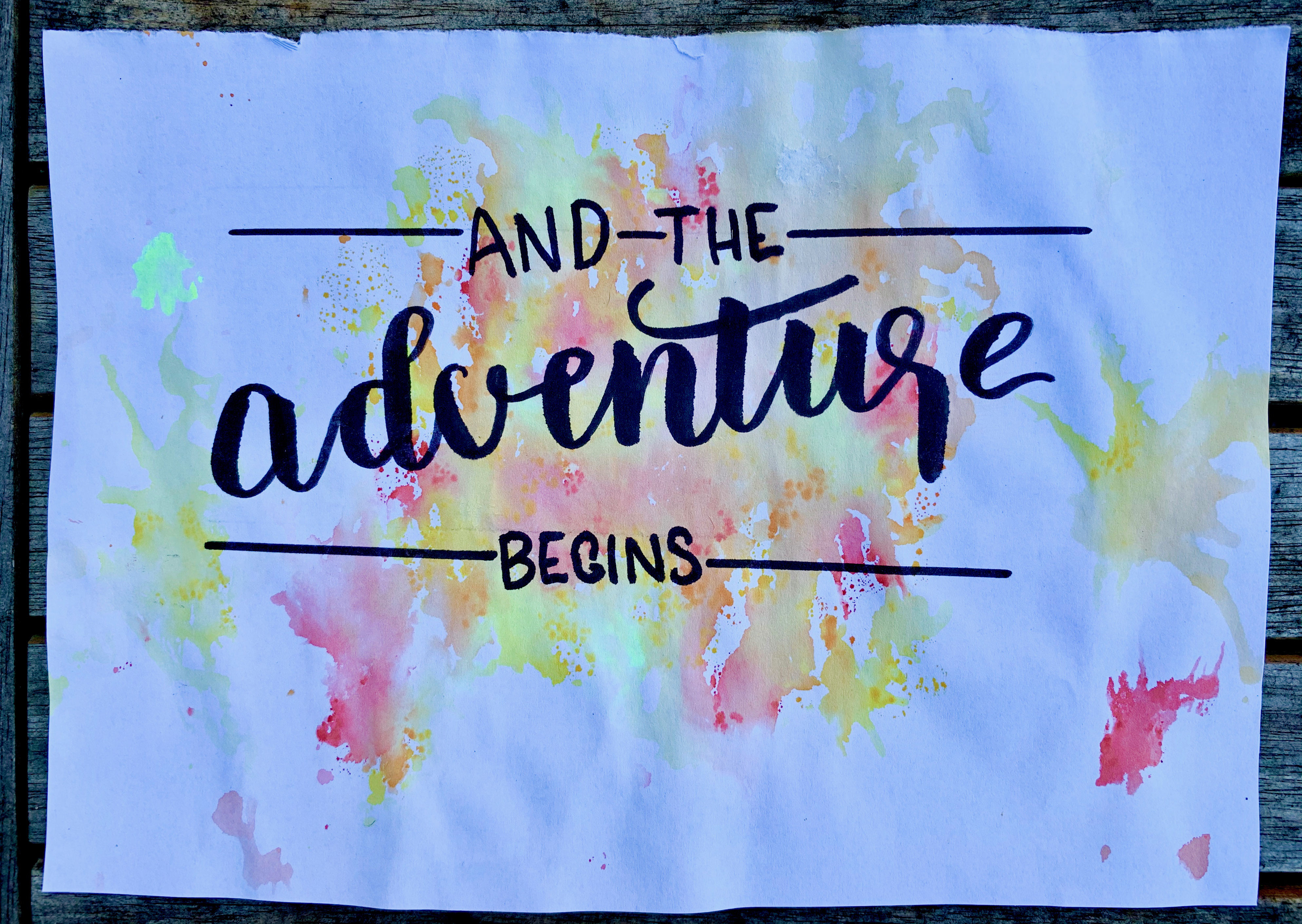 Later on, after drying, the text was added by my different handlettering styles with use of special shaped pens.