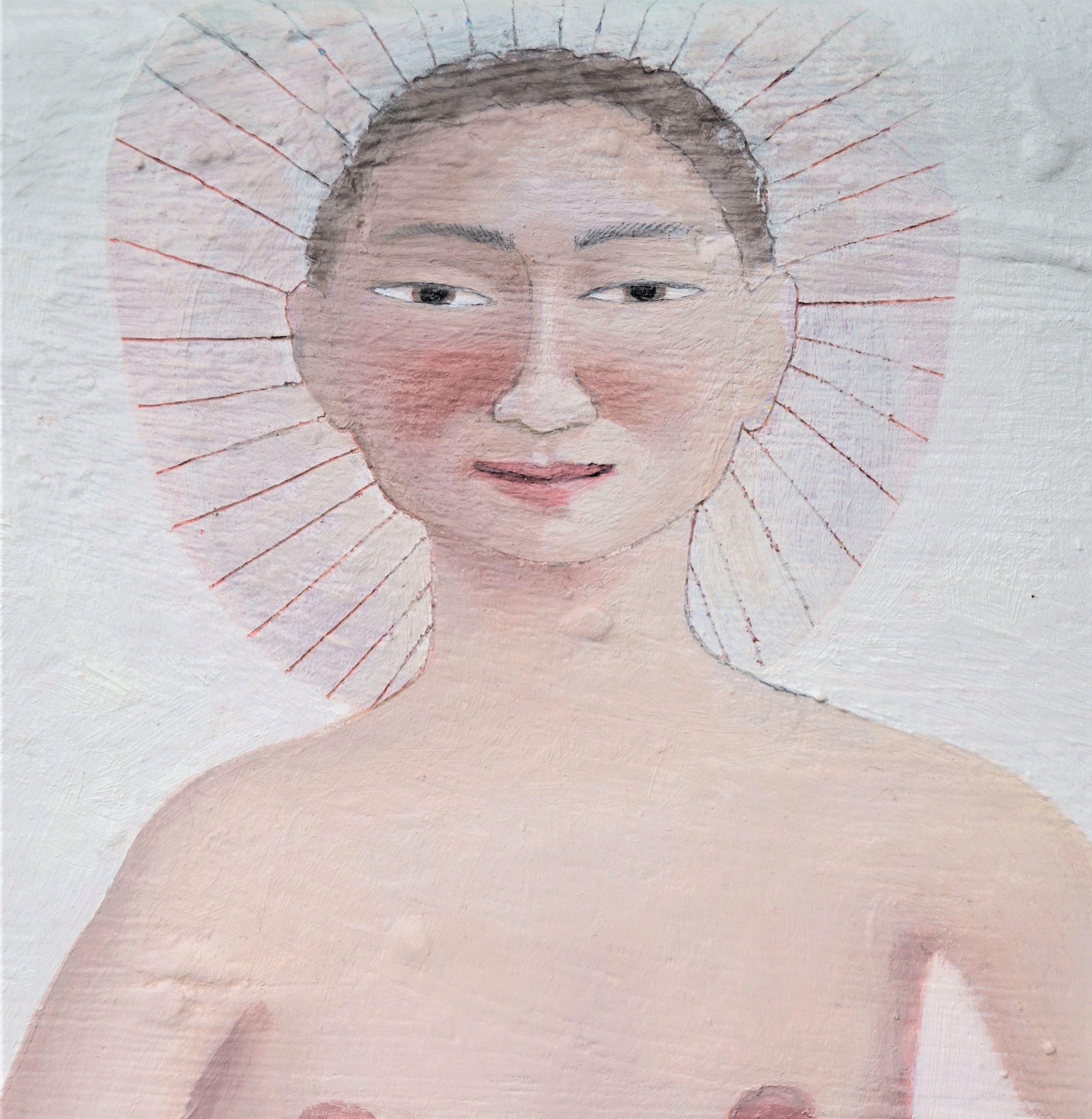 This is an NFT taken from a small painting on found wood – very old wood – from the medieval quarter of Guardia Sanframondi, Italy. The original painting is 24 x 19 x 2 cm, in oil, gold acrylic paint and pencil.
