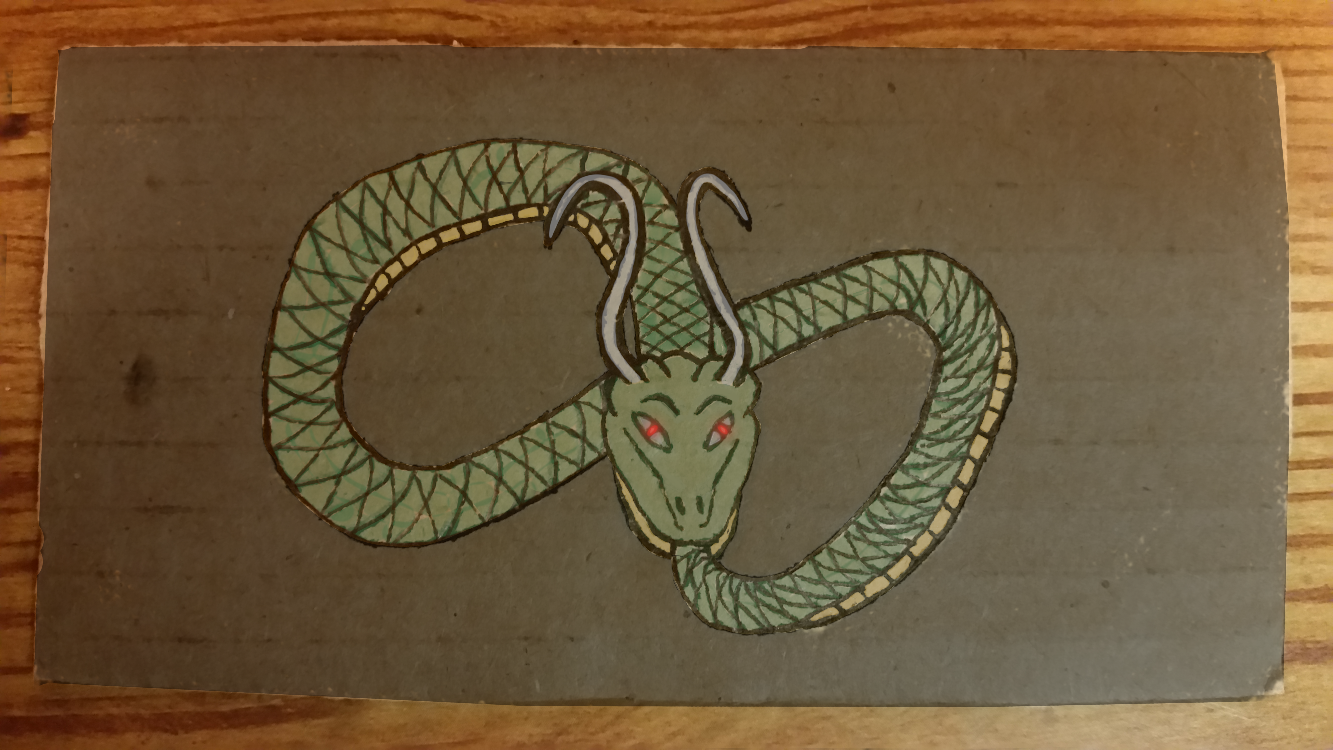 A mixed media piece on reclaimed cardboard enhanced with digital coloration through Gimp. Thanks to RFY for inspiring me to explore this approach. Full strength image unlockable.