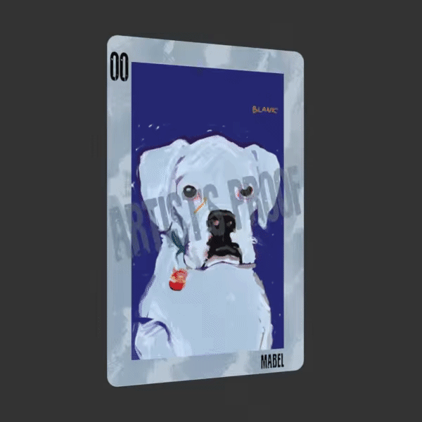 My rare artist’s proof of the DOGMA Portraits NFT card series. “Mabel” the white boxer was my first muse in the series and was painted in 2008. Since then, I have painted over 100 dogs and cats. https://dogmaportraits.com