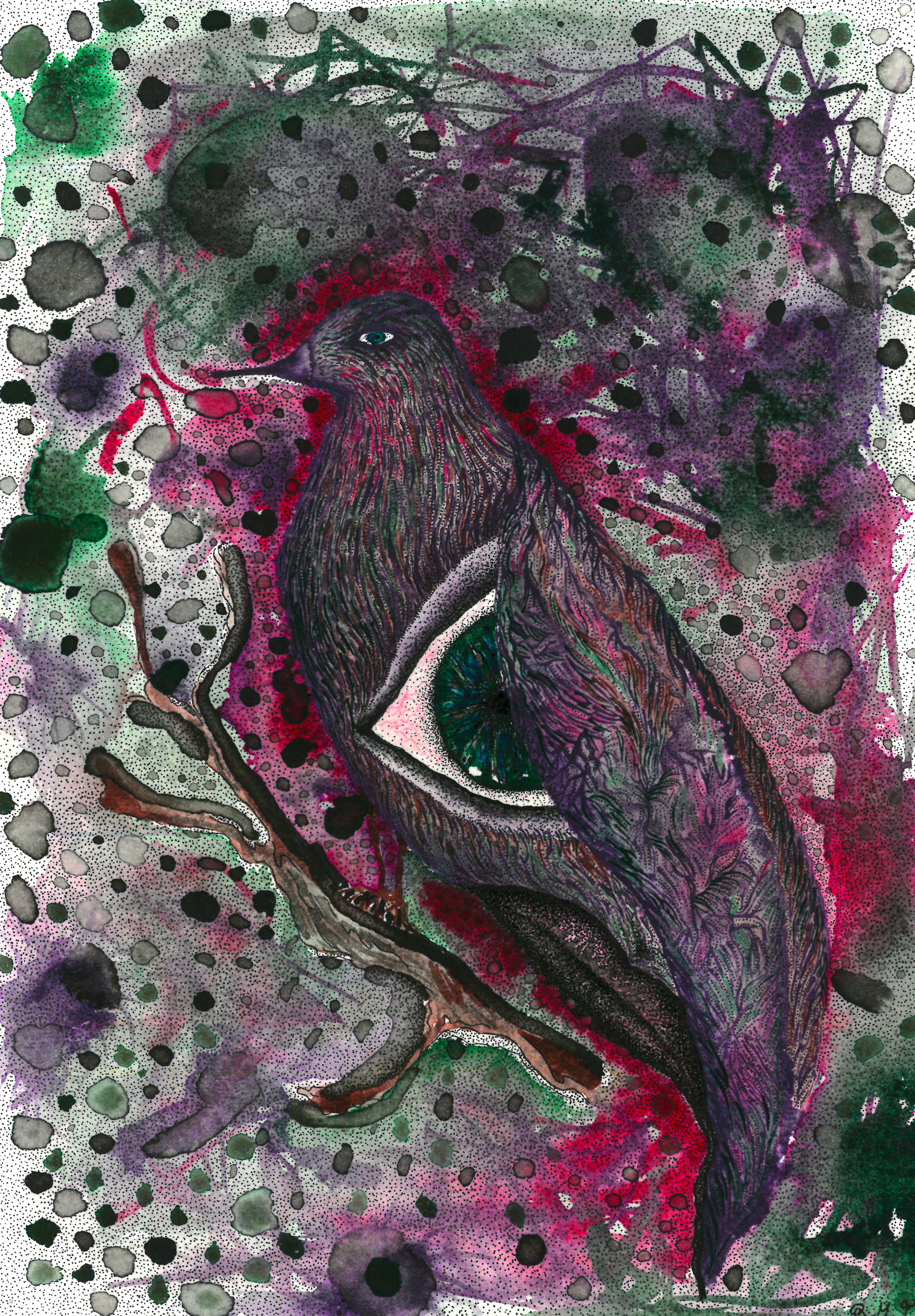 "The eye bird" is an abstract painting. The eye is used as a metaphor for perspective while the bird represents the idea of freedom. We create our reality through our thoughts.