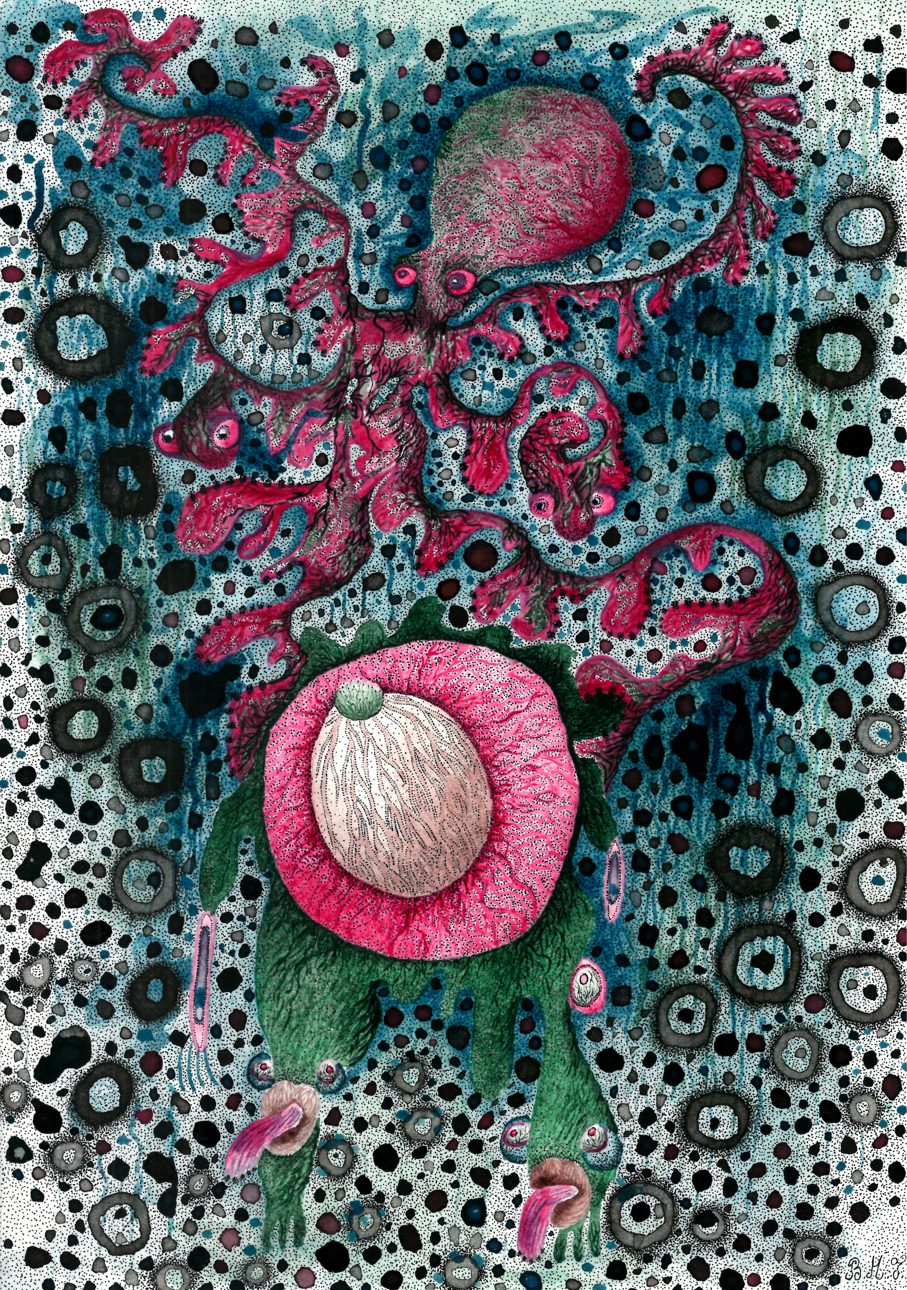 I was thinking about perspective and our ability to see when I have created this artwork. I combined pointillism and watercolor painting to get this abstract drawing done. Daniel Smith watercolors , Indian ink and my 0.1 mm rotring isograph make an excellent team.