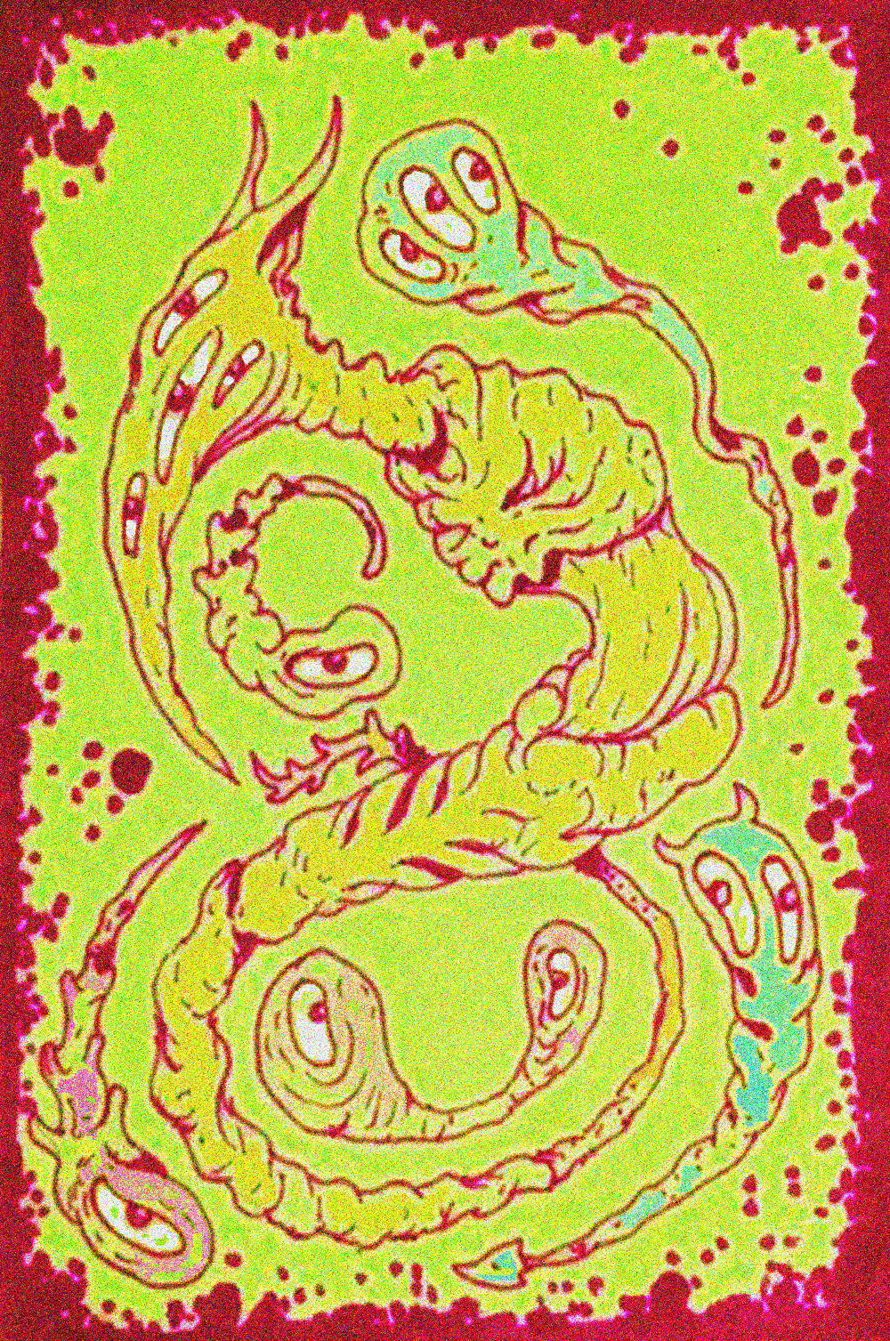 part of the collection of bizarre colors, where each nft is different from the other but the protagonist is the color and the strange, in this case the representation of a parasite queen and her children, nft exclusive in nft showroom