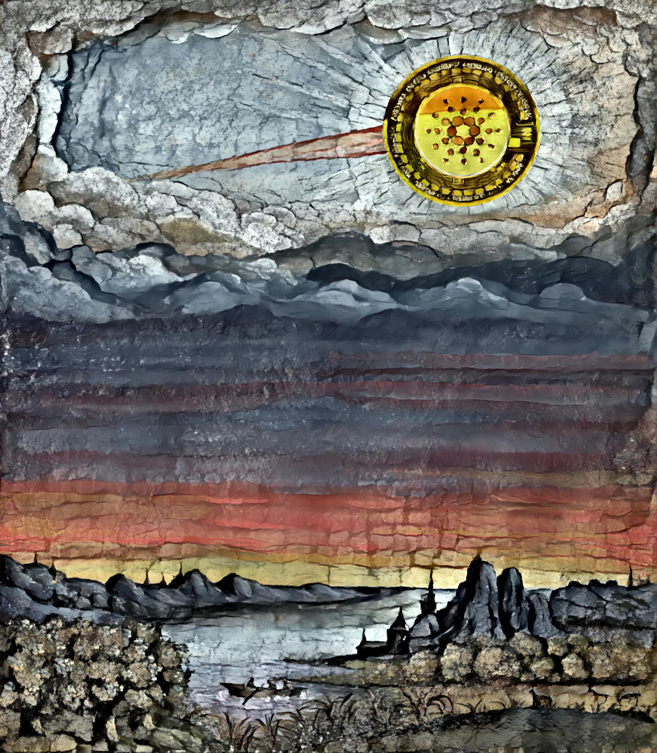 Cardano Crypto Comet is an original painting, remastered with AI generated layer transfer systems and Photoshop. JPEG 1345 x 1541. It illustrates the rising star on the crypto heaven: Cardano. One edition only.
