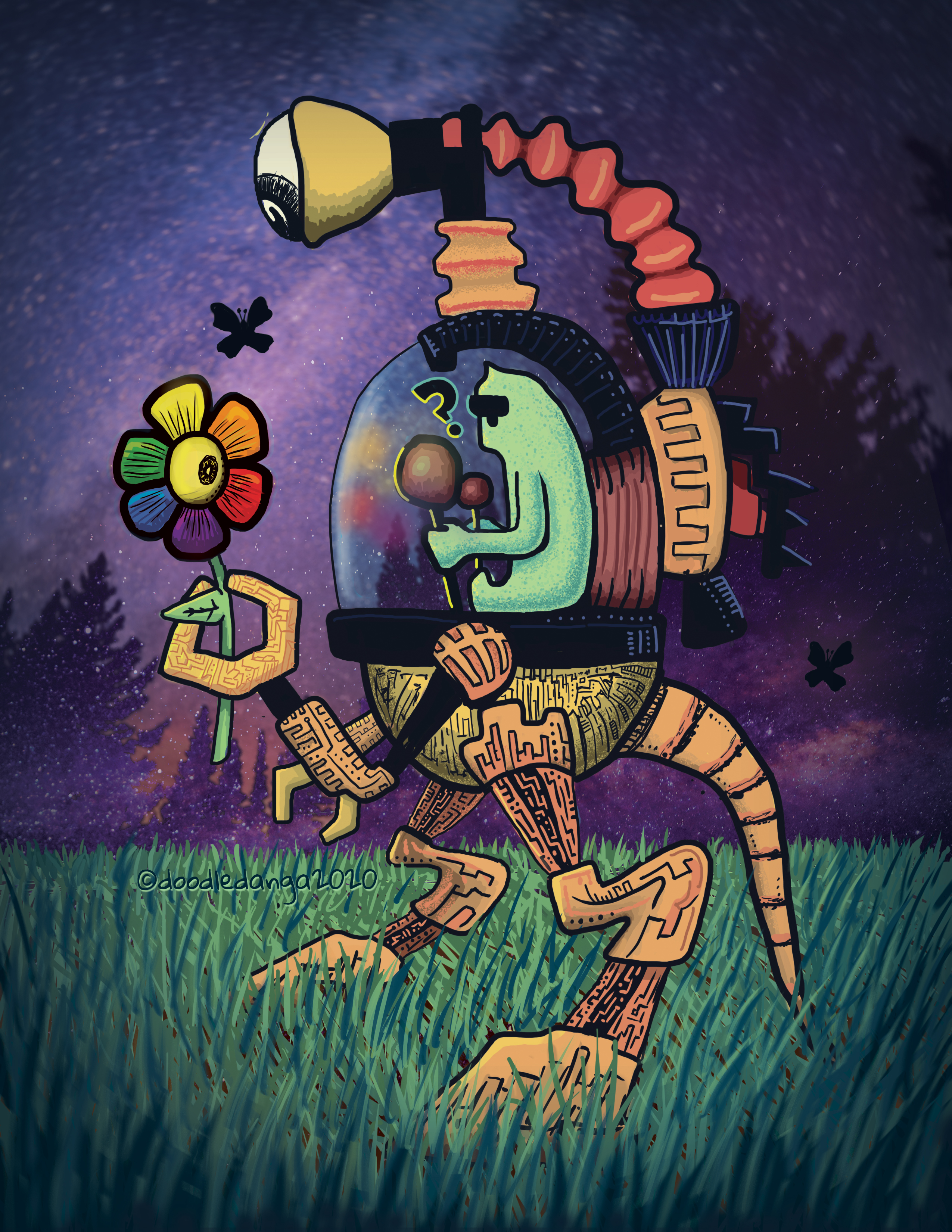 Ten years later, Hum found another iris flower while wandering through mystical spatial forest lands. It made him remember old times and imagined life outside the robot. He profoundly questioned life and nature as he kept gazing through the light of the iris.