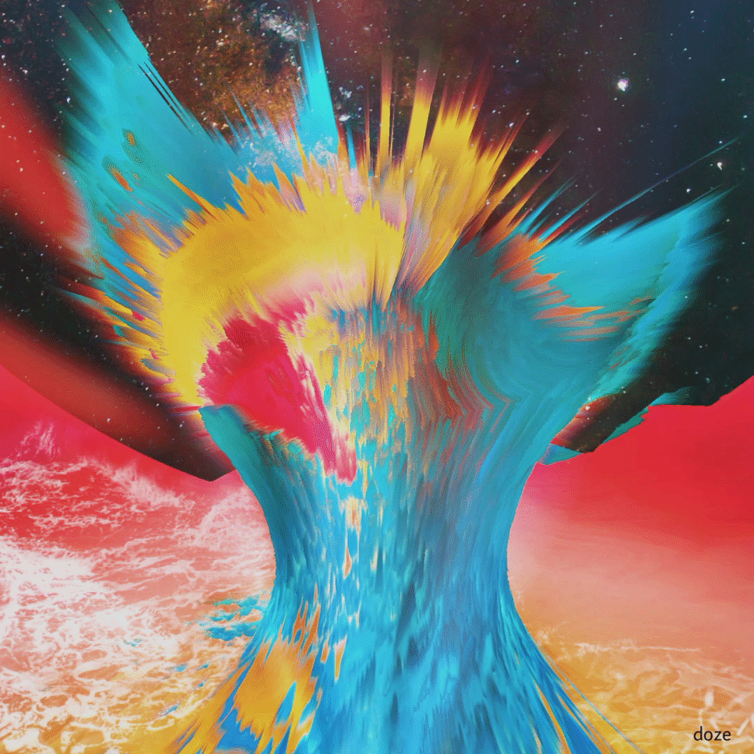 Surreal planet landscape where the first cosmos fountain still feeding the galaxys. 1080x1080px gif made on my mobile phone. Unlockable 1080x1080px mp4 video version