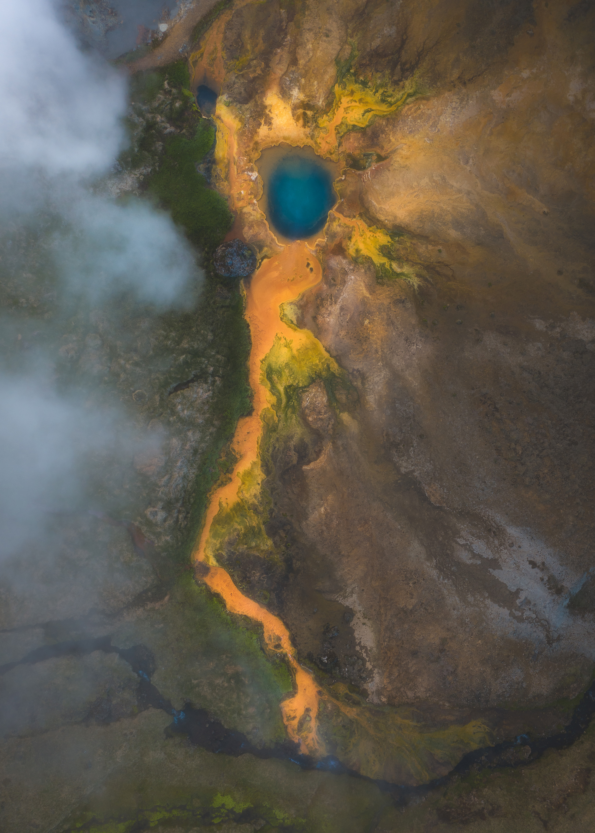 This particular piece is from a very little known place in Iceland. It´s a geothermal pool with crazy color schemes and steam vents surrounding it. It is remarkably similar to how human neuron looks like, with soma, axon and axon terminals all present.