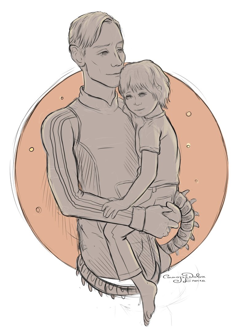 In David’s arms is a character from a story — there’s a big and complicated story. The events in this figure 200 years later from the events of the Covenant ... In general, they handed over the child found in the forest to David)