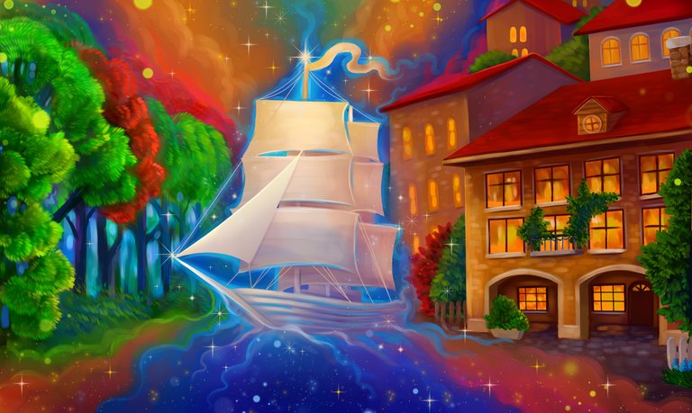 They rose with greater strength from the radiance of the raised allied flag with a silver tree at the head of the ship.)