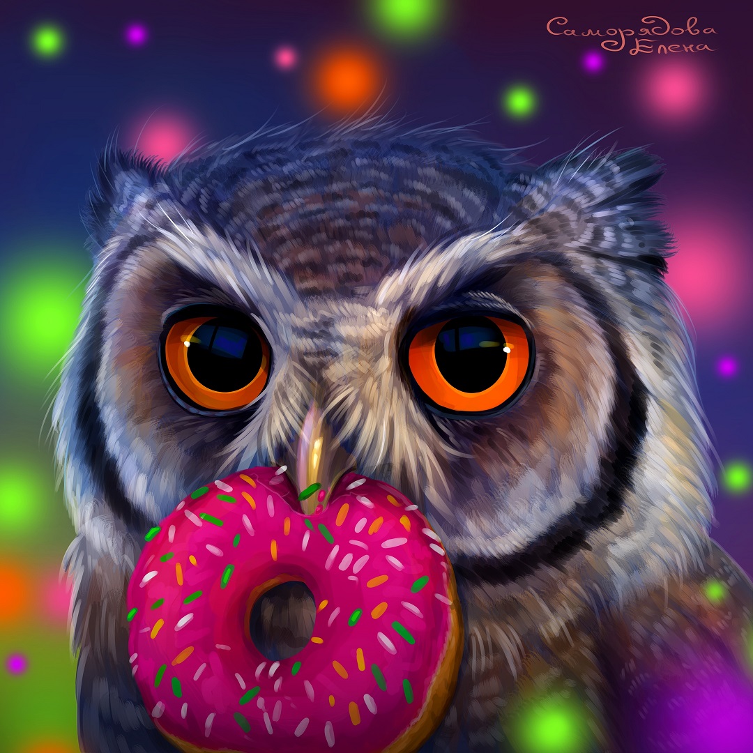 Owl is a donut lover. Program: Paint Tool SAI