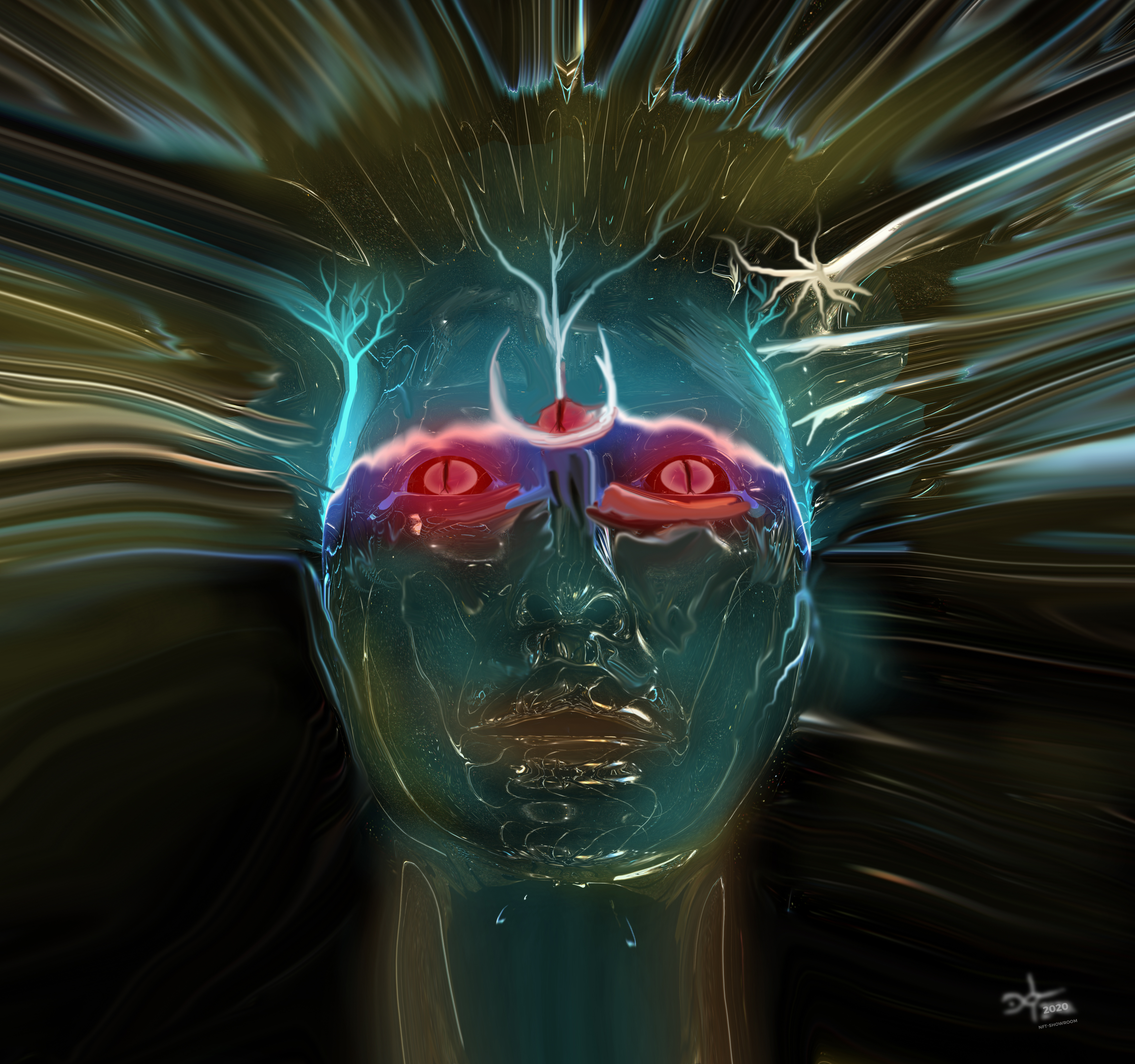 Cosmo shiva is a AI cyber bot made and trained by a talented cyber hippie and this picture captured the moment when consciousness flickered trough his AI-mind for the first time. A tiny glitch in the time space continuum captured. 4036 x 3784 pixel resolution.