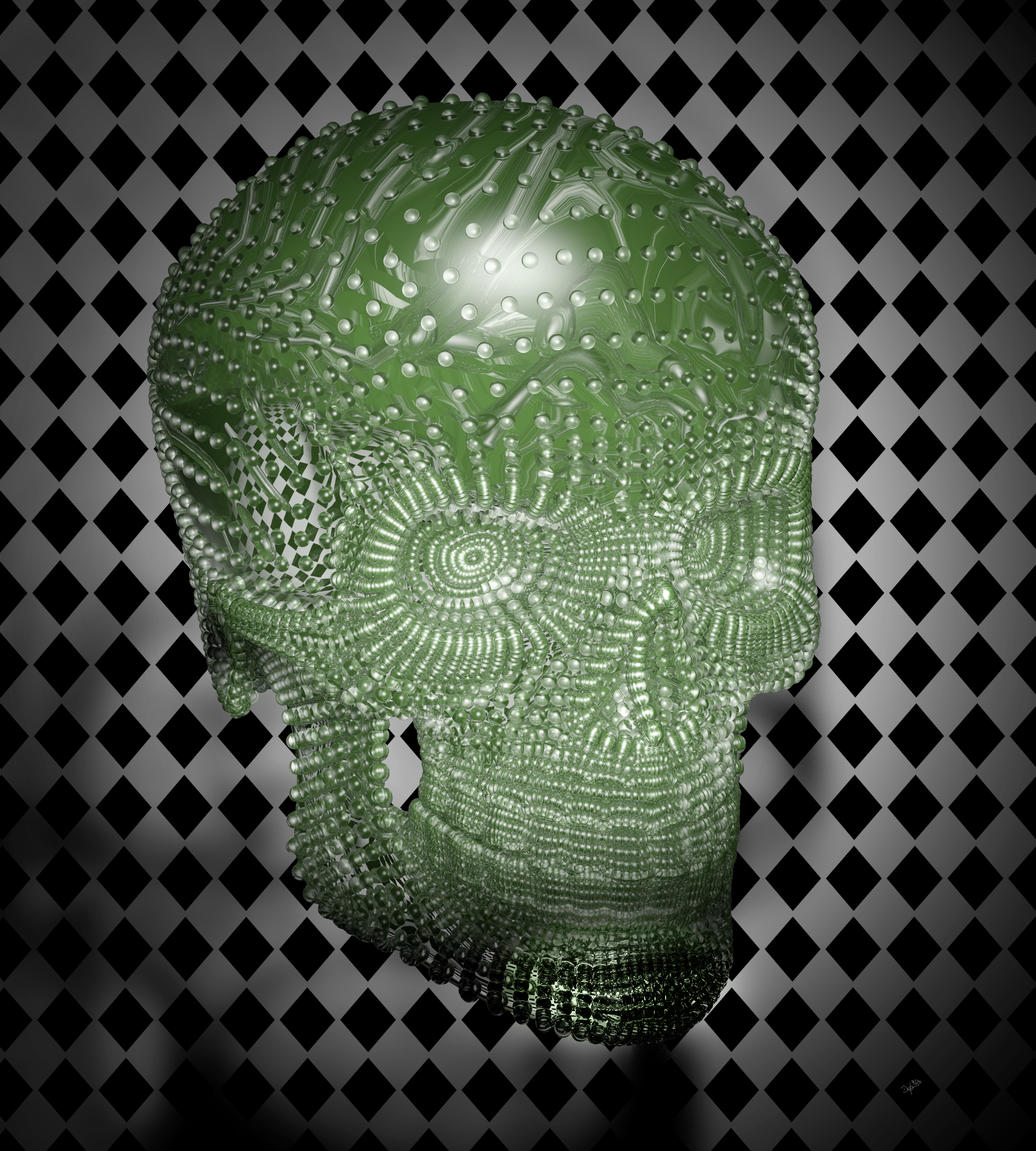 Crystal Skull Jade. there may be or not be any other crystal skulls than Jade released here in the future we will see. 4500x5000 Highresolution 3D raytracing render, refined, colorgraded, signed with date and signum.