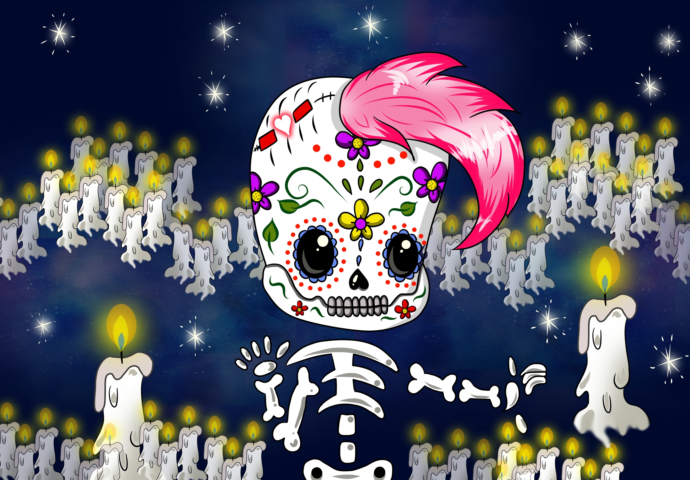 Inspired by the skull, the day of the dead, the darkness, I present a lot of tenderness in chibi-kawaii art that I'm sure many girls and teenagers will like and why not? Ideal to be a notebook cover, printed on clothes, stickers and an endless number of ideas you can do with this original design, which I place as a unique sale, guaranteeing that only one buyer has all the rights to my work when buying it.
