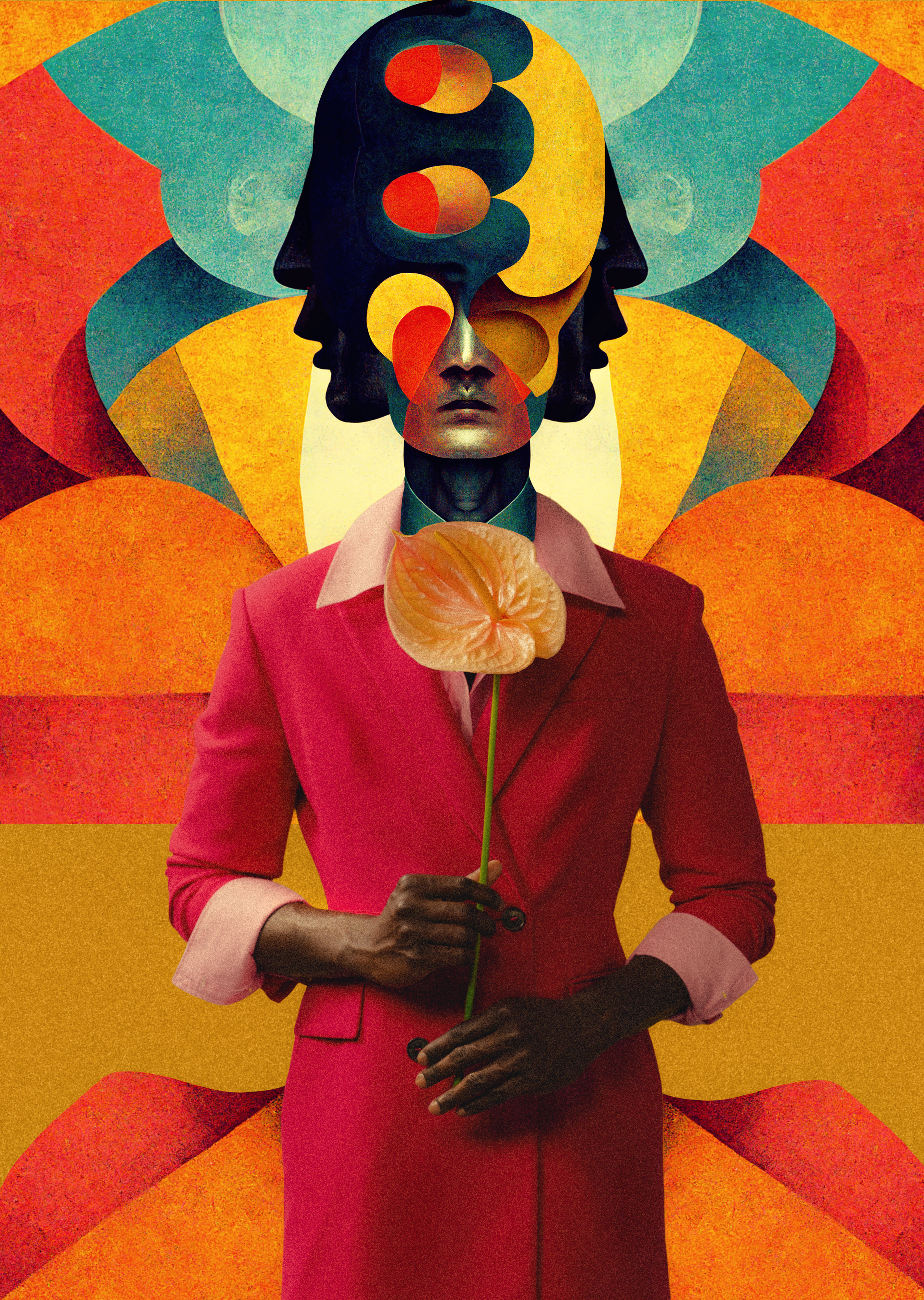 Man and Mind in the surrealist style. Combination of AI art + photography + Photoshop PNG 2666 x 3750