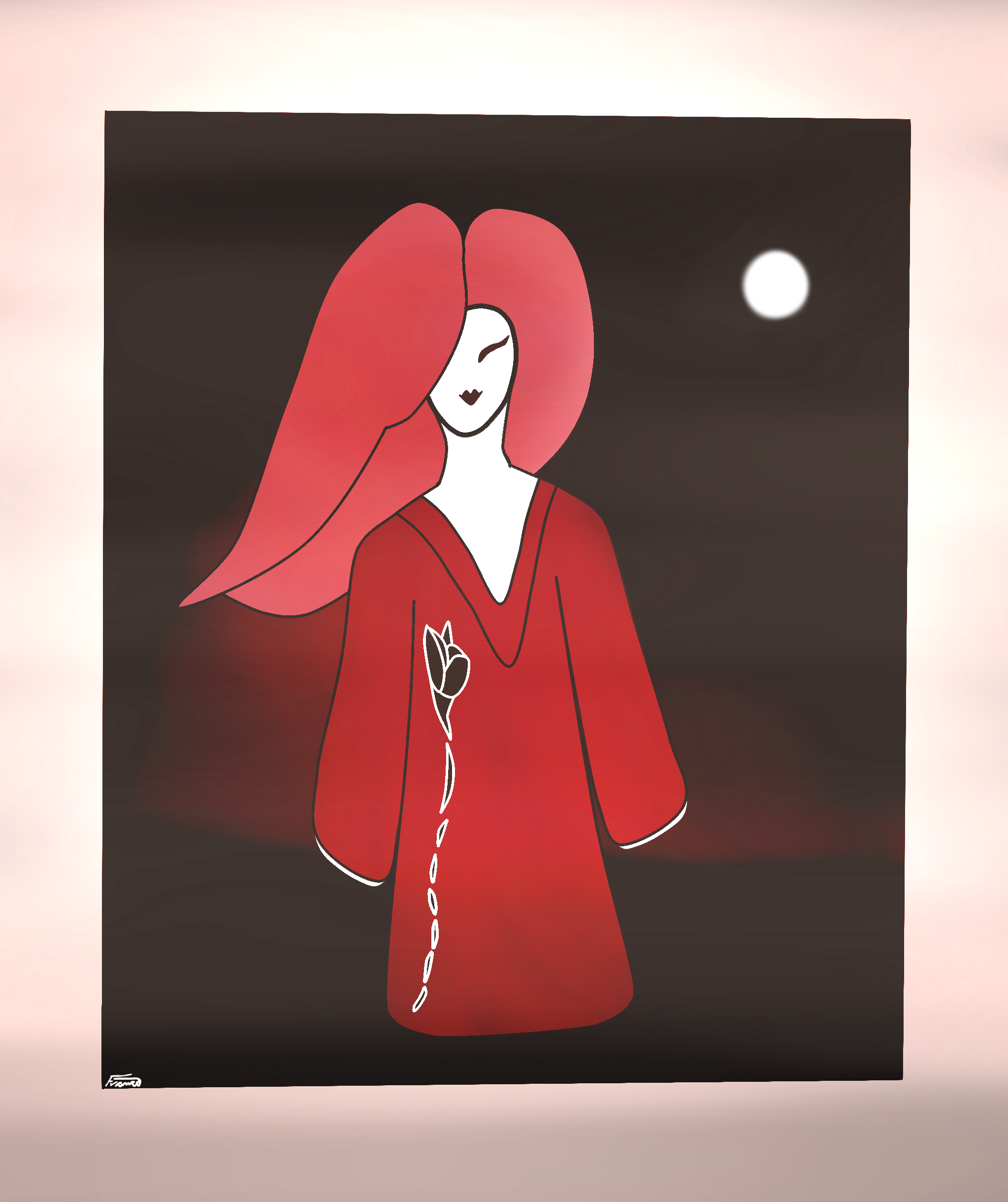 This work, in my learning journey, arose from the need to want to highlight something simple, but at the same time, look good, I thought about the oriental style since I have always liked how even with lines that can be seen simple, they manage to fit perfectly, so trying and practicing, I came to this curious appearance by this spectrum, pale as the moon, and in the abyss of what could be hell.
