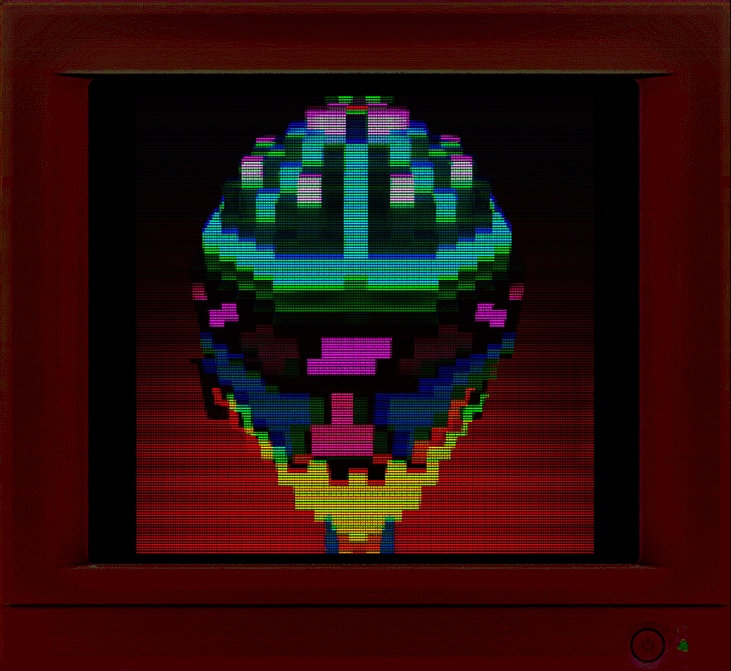 Alien head made with MagicaVoxel, processed with Photomosh, assembled with Gimp