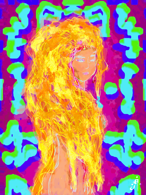 Painted each one of the three layers with a Wacom Bamboo on Krita, with my left hand, but i'm not left handed, then processed two layers with photomosh to add motion, finally, assemble the gif with Gimp