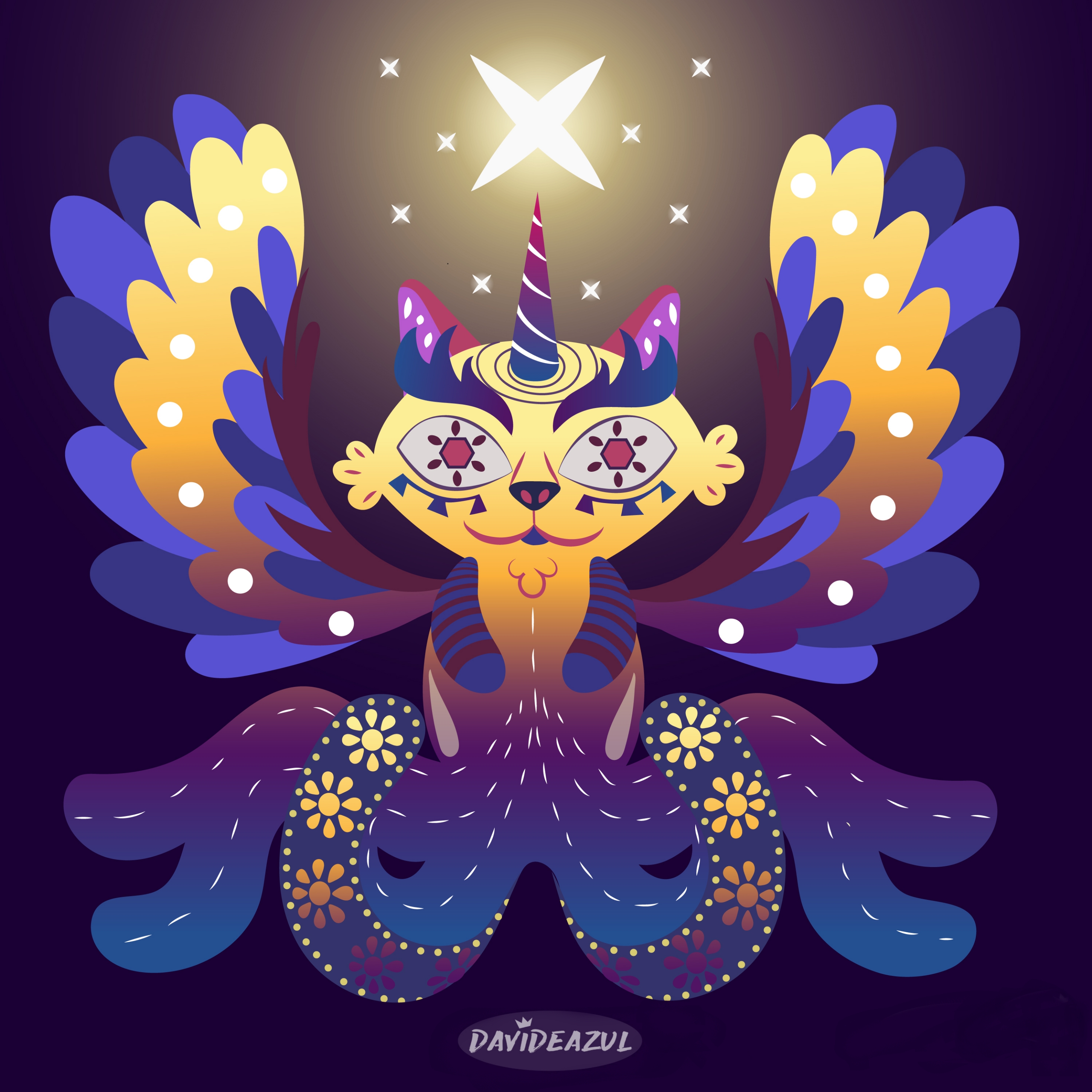 This type of magical alebrijes are a kind of fairies that are born from the dreams of humans. They stay for life with their creator to fulfill any wish, as long as it is good. Physically, it is formed by a cat, with octopus legs, wings of birds and a small magic cornmentary, with which he enforces your desires. This magic alebrije is a protective guide.