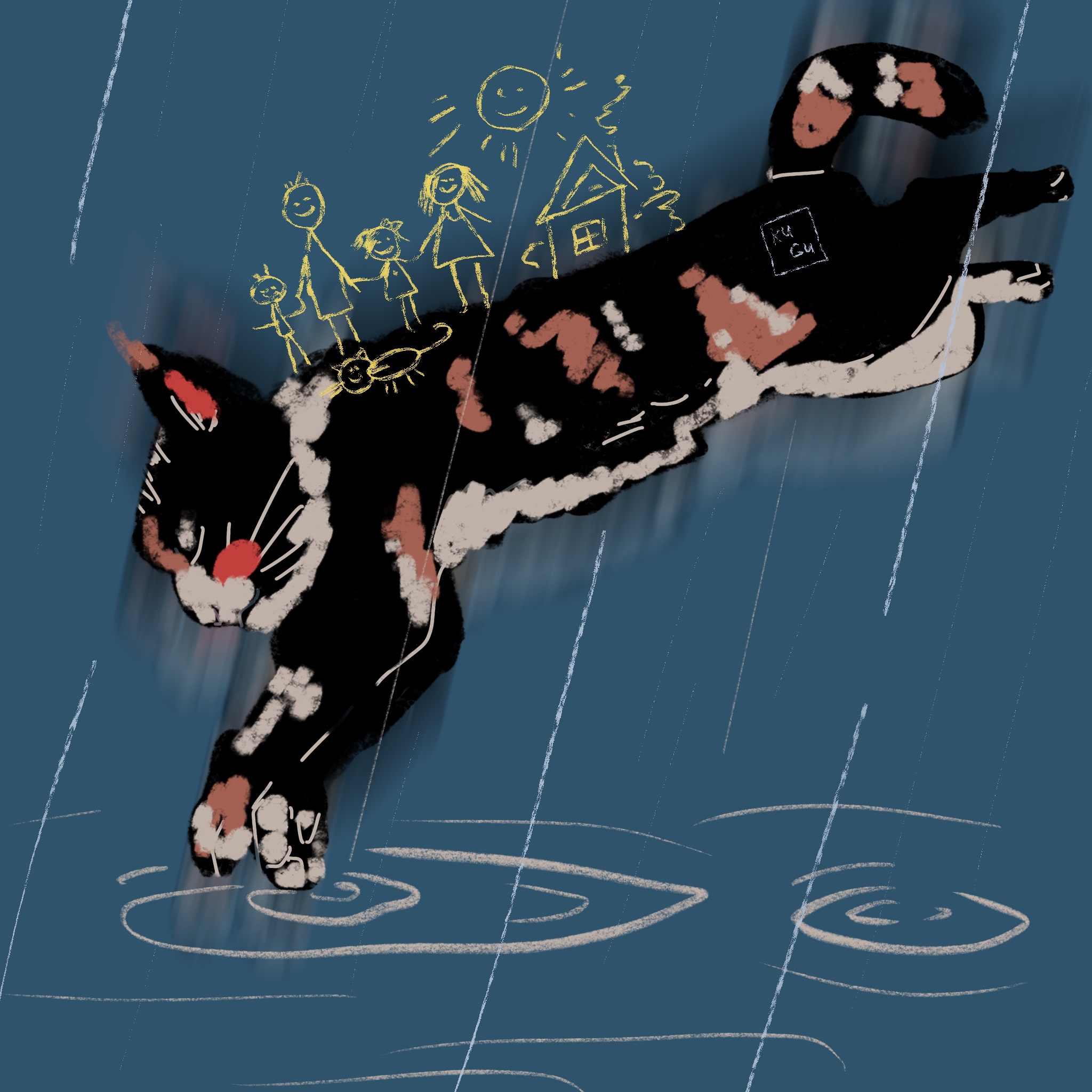 Dreams of a happy family - lines drawn with a yellow piece of chalk on the asphalt. Lines that rain erases. Happiness is like a sleeping cat. There is a serenity in her breath that we cannot see.