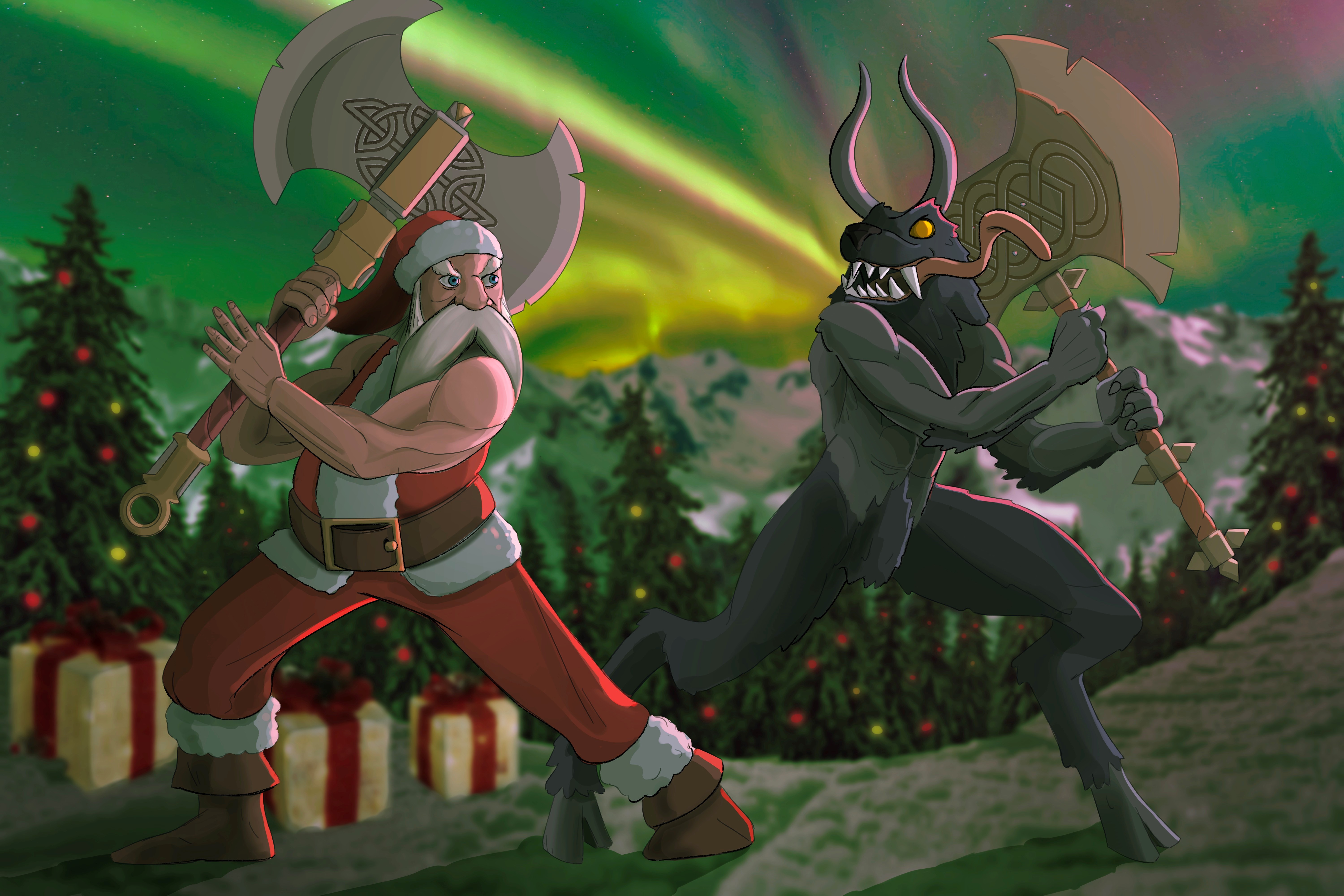 Santa Claus V. Krampus represents 2-special edition cards in the card game Abair: The Black Magic wars. Abair is a unique card game in development at the time this NFT was made. When the game launches, the holders of These NFTs will be entitled to 2-Special Edition Cards! Legendary Soldier Santa with the powerful special: Immune to magic damage. And: The Legendary soldier Krampus with the powerful special: Immune to Magic damage. These 50 Editions represent the only editions of these cards to ever exist. A total of 100 cards, 50 or each type, will be awarded to the owners of these NFTs at the time of the Games launch in 2022! Support the start up game with your Purchase! Get some of the rarest cards our game will ever have! Get these powerful cards ahead of the games release!