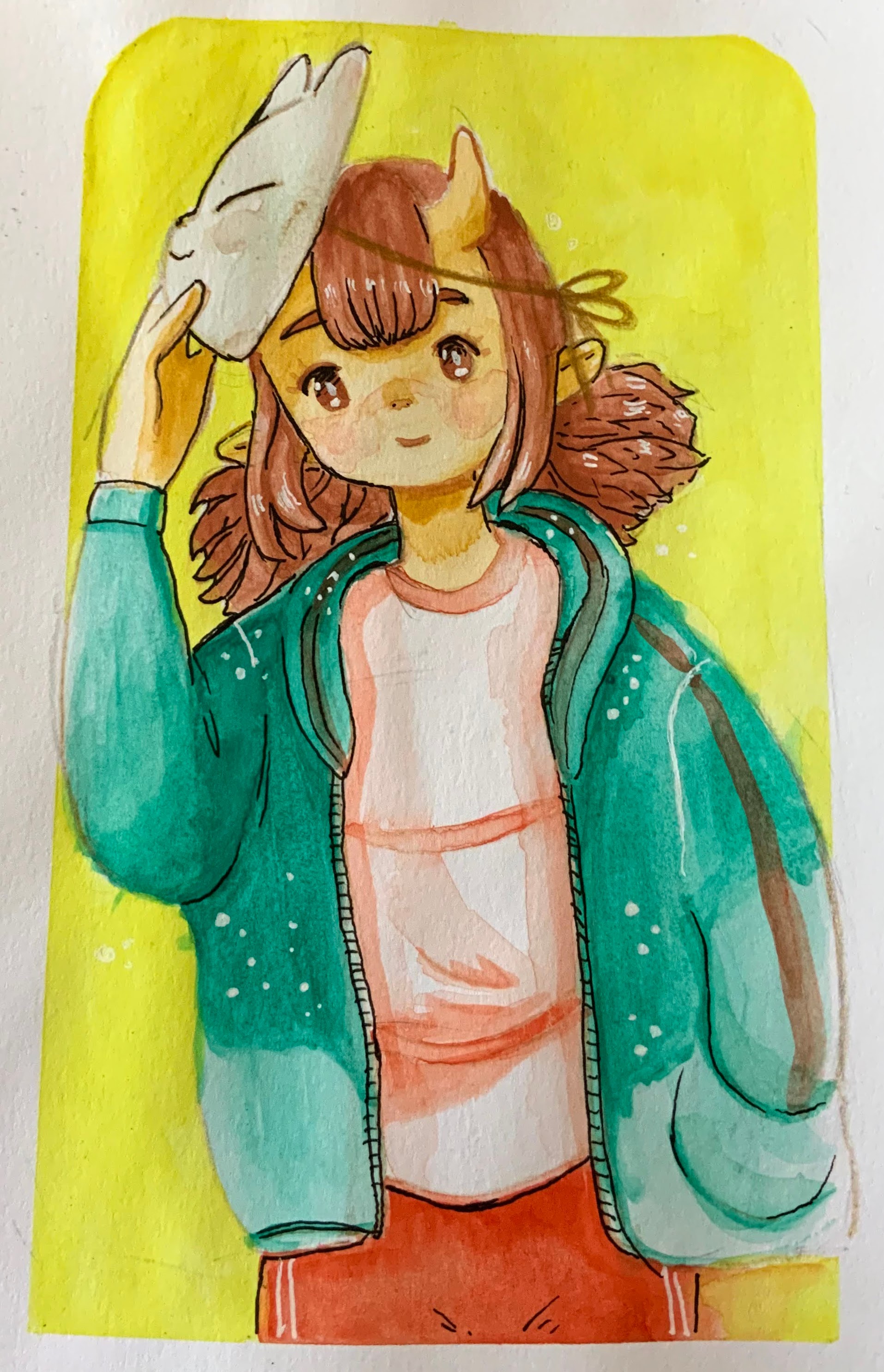 Fresh watercolor illustration. 1914 x 2969 pixels. Traditional technique. I love doing cute drawings. To see the process check out this HIVE post: https://peakd.com/hive-156509/@grisvisa/unmasked-demon-girl-cute-watercolor