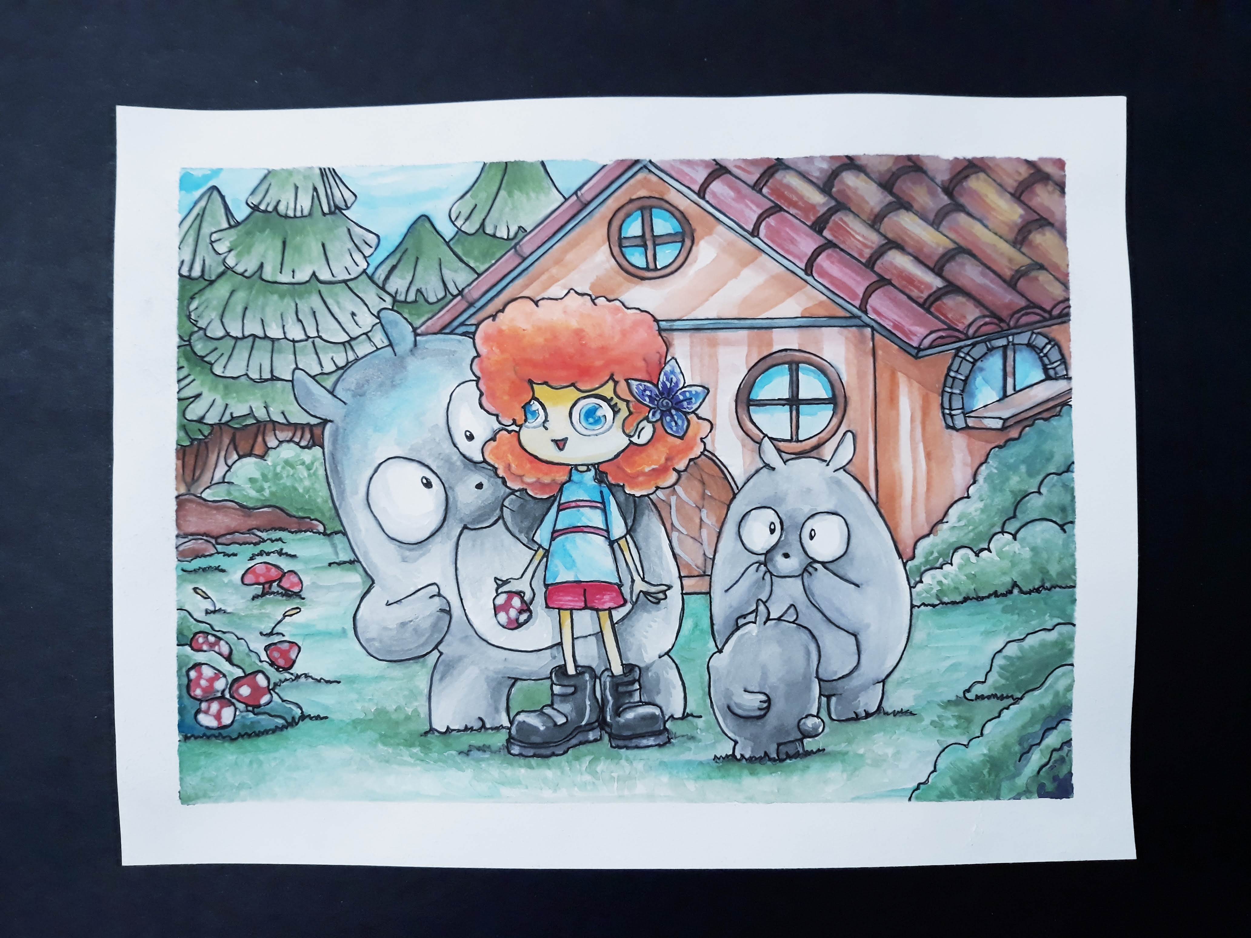 Watercolor Painting I made back in 2018. This may seem cute at first sight but this girl is having the trip of her life. Are those creatures even there? Say no to drugs kids.